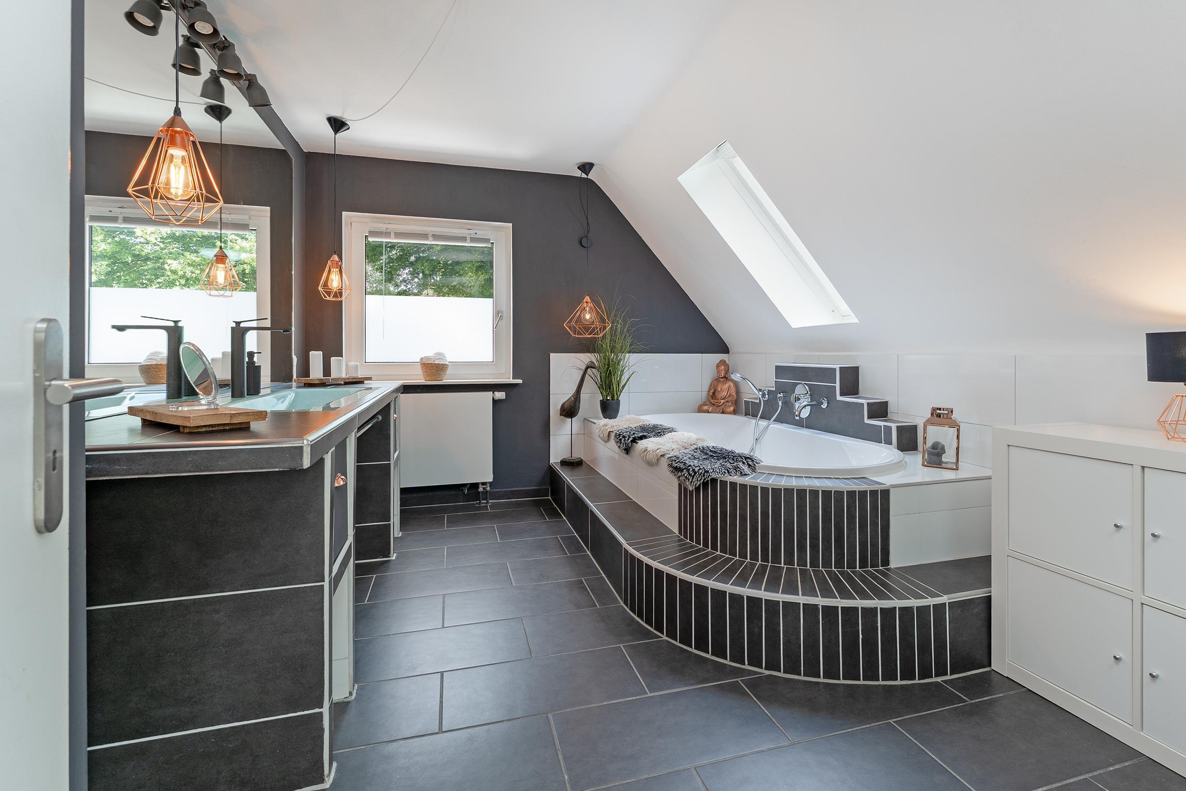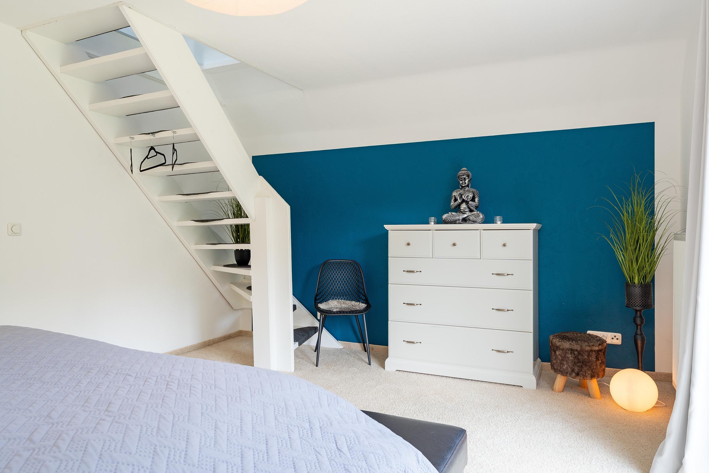 Im Obergeschoss befinden sich drei gemütlich eingerichtete Schlafzimmer: Das erste Schlafzimmer ist mit einem komfortablen Doppelbett (180×200?cm) ausgestattet. Im zweiten Schlafzimmer steht ein weiteres Doppelbett (2x 80×200?cm) zur Verfügung. Das dritte Zimmer bietet ein Schlafsofa (140×200?cm) und eignet sich ideal für Kinder oder flexible Schlafmöglichkeiten. Im Erdgeschoss befindet sich ein weiteres Schlafzimmer mit einem Doppelbett (2x 90×200?cm) – ideal für Gäste, die auf eine ebenerdige Unterkunft angewiesen sind oder einfach mehr Rückzugsmöglichkeiten wünschen. Ihre Urlaubsgarderobe verstauen Sie mühelos im jeweiligen Kleiderschrank. Im Obergeschoss erwartet Sie ein modern ausgestattetes Vollbad. Zusätzlich befindet sich im Erdgeschoss ein praktisches Gäste-WC.