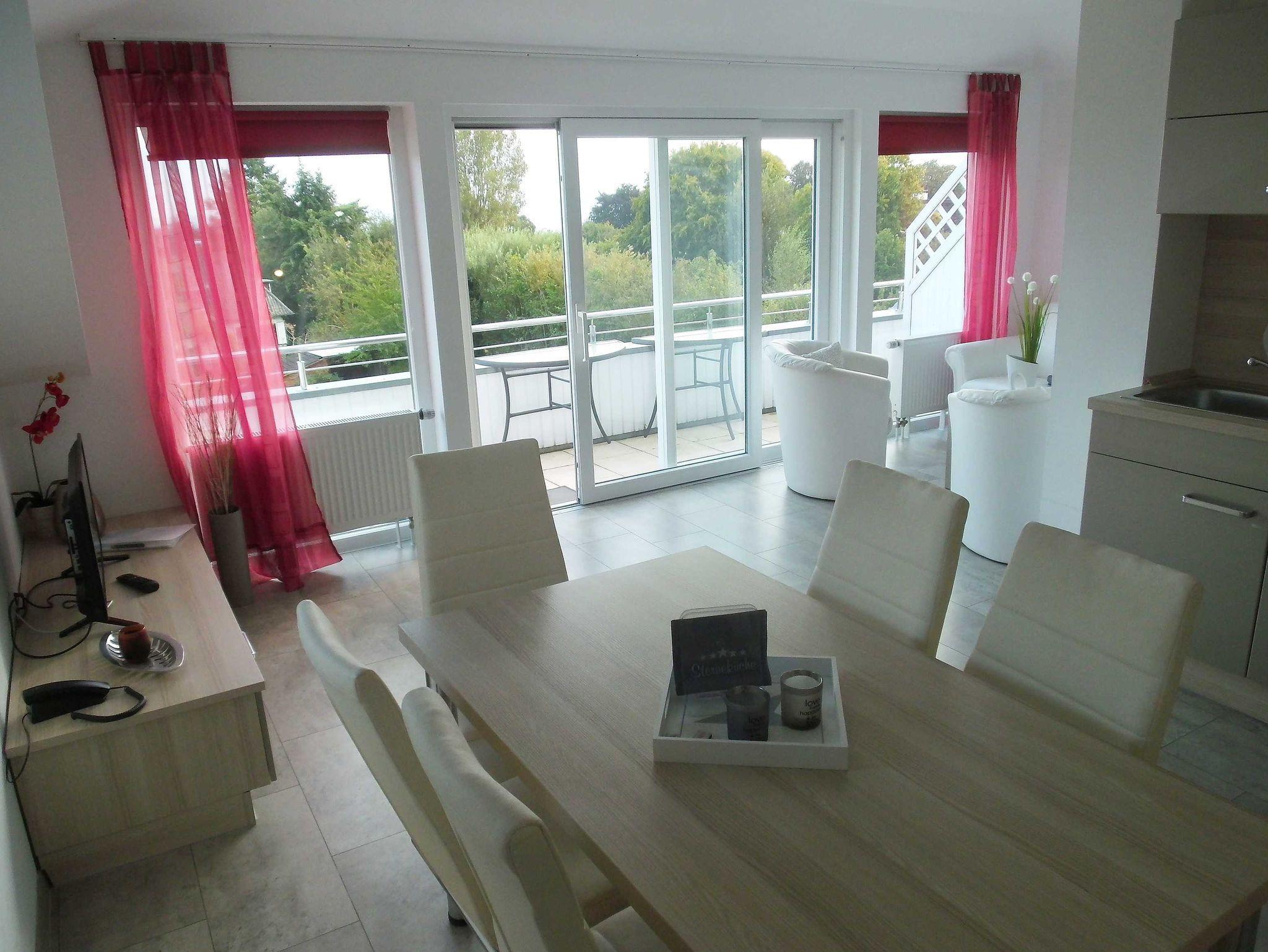 VV 33: Penthouse, ca. 57 m², 5-6 Schlafplätze, 1 Wohnzimmer mit Do.-Schlafcouch, 1 Schlafzimmer mit Doppelbett, 1 Kinderzimmer mit 2 Einzelbetten, Duschbad, offene Küche, Dachterrasse; Panorama-Meerblick.