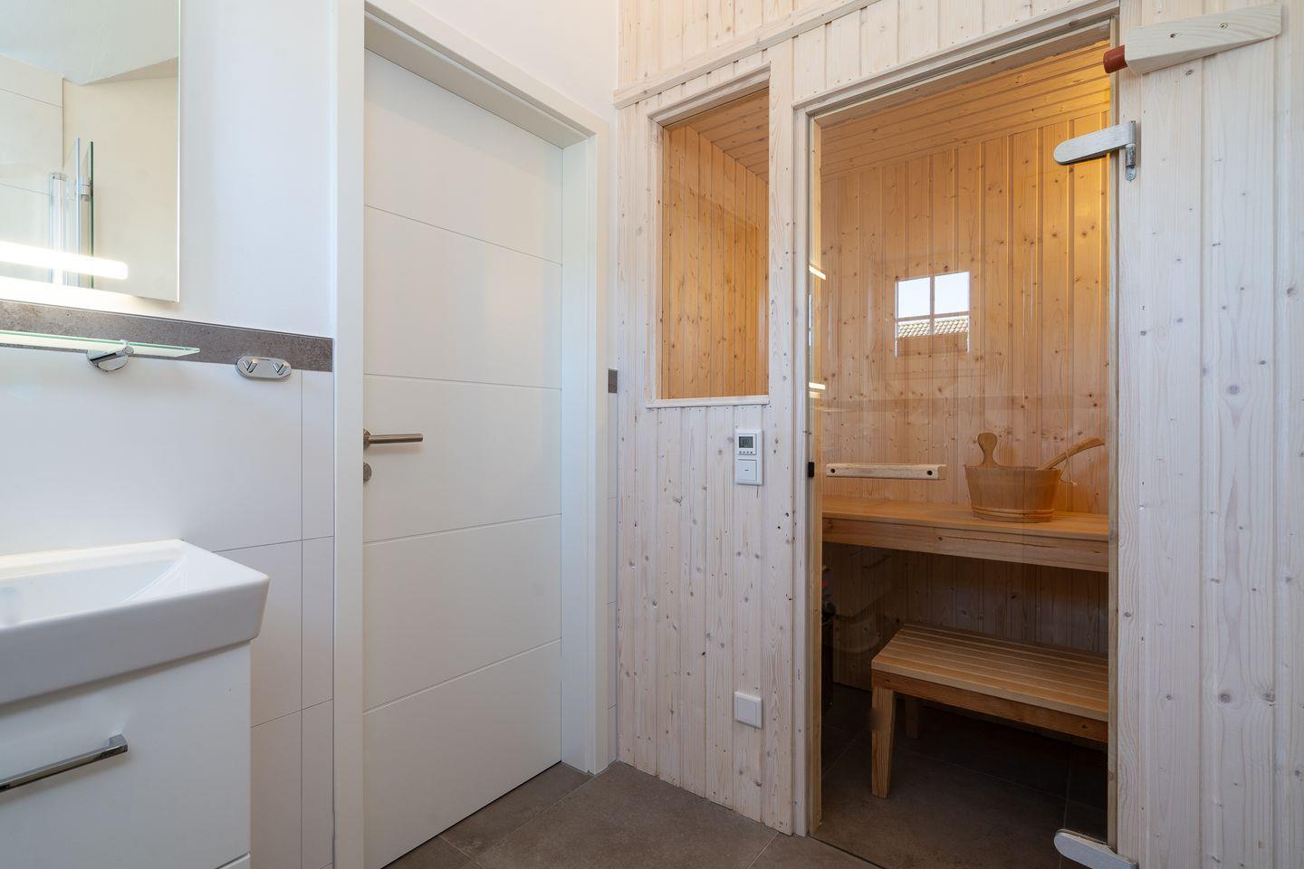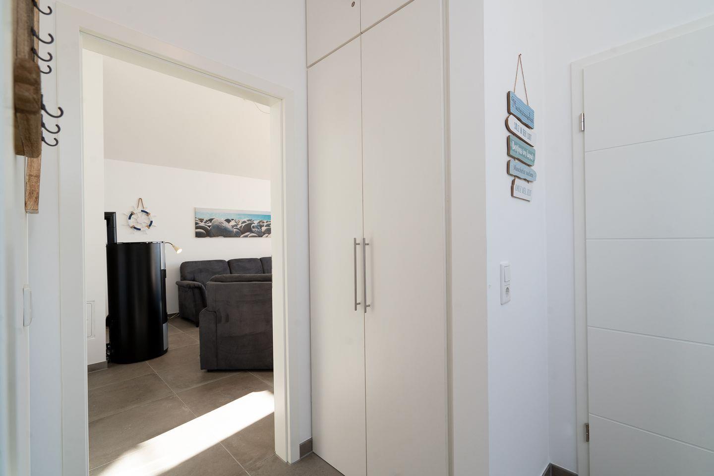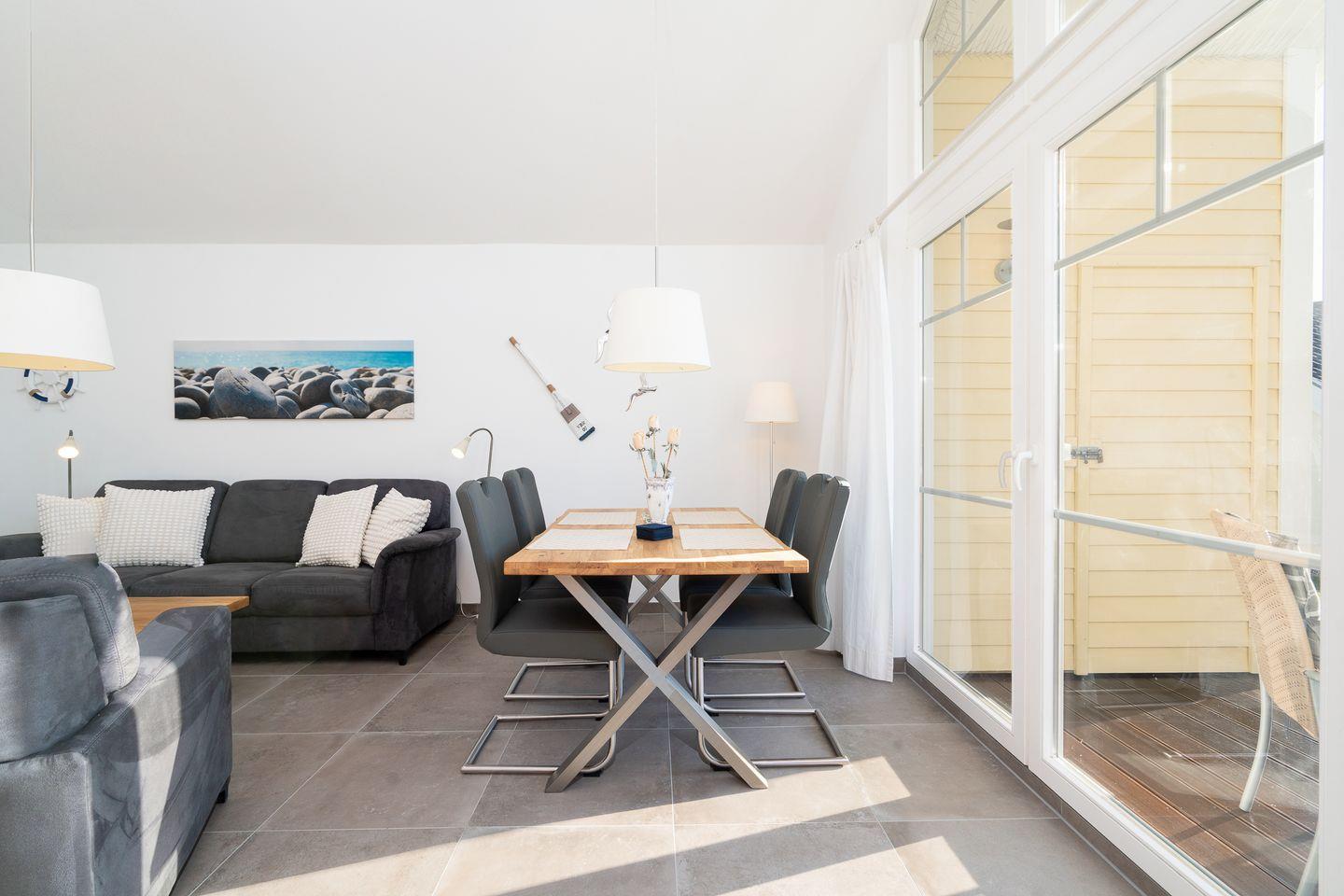 Auf 70 qm auf einer Ebene stehen Ihnen 2 Schlafräume (1x mit Doppelbett (Matratzen 2x 80cm x 190 cm) und 1 x mit 2 getrennten Betten), ein geräumiger Wohn- und Essraum mit Kamin und Zugang zur Terrasse zur Verfügung. Von der Terrasse können Sie durch die anderen Häuser hindurch die Ostsee sehen. Die zum Wohn- und Essraum hin offene Küche ist mit Geschirrspülmaschine, Herd und Backofen gut ausgestattet. Der Kaminofen im Wohnbereich sorgt für gemütliche Stunden mit Freunden und Familie. Im modernen Bad finden Sie auch die Sauna, sowie eine bodentiefe Dusche. Der Komfort einer eigenen Sauna wird sehr von unseren Wintergästen geschätzt. Eine Waschmaschine gehört ebenfalls zur Ausstattung. Die Beheizung erfolgt über Elektroheizungen und den Kamin.