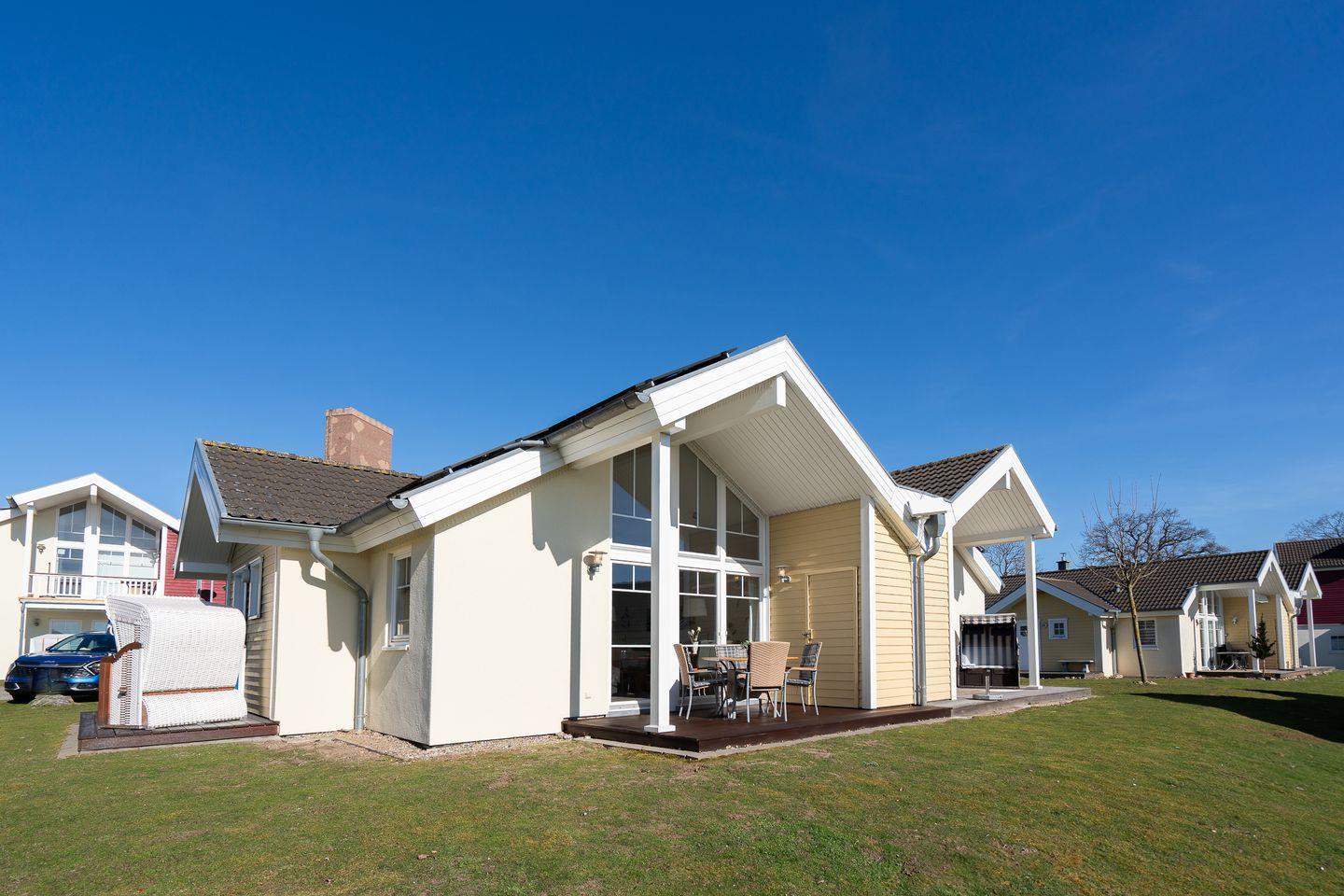 Die gemütliche Bungalowhälfte Nr. 57 liegt in der Strandpark-Anlage und ist für 4 Personen geeignet. Vom geräumigen Wohnraum mit Kamin und offener Küche haben Sie Zugang zur Terrasse. Die Küche ist mit Spülmaschine, Backofen und Herd voll ausgestattet. Von der Terrasse können Sie durch die anderen Häuser hindurch die Ostsee sehen. Im ersten Schlafraum steht ein Doppelbett, im zweiten stehen zwei Einzelbetten. Das Bad ist mit Dusche, Sauna und Waschmaschine ausgestattet. WLAN ist inklusive.