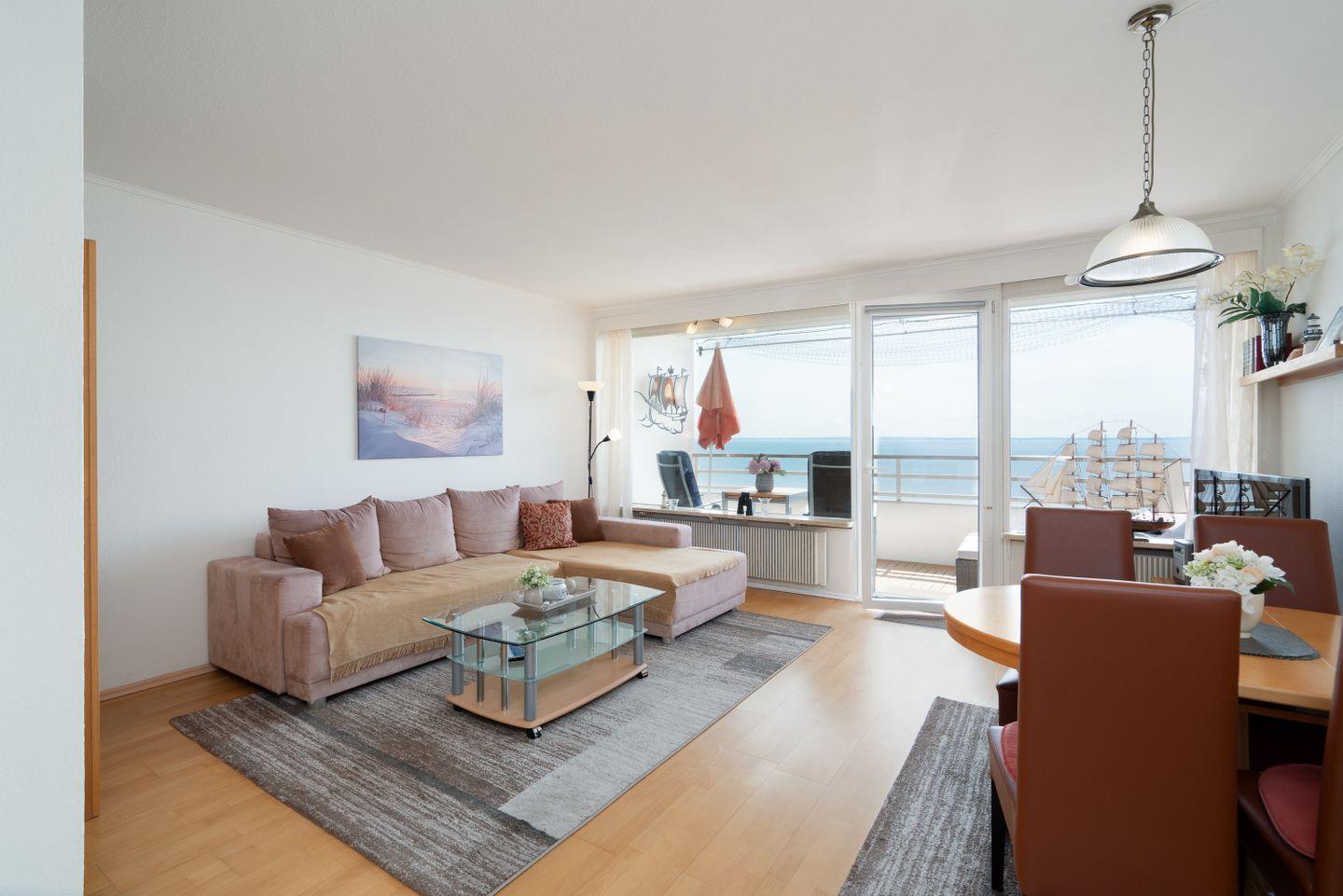 Die 2-Raum-Ferienwohnung Nr. 537 liegt in der 6. Etage und hat einen wunderschönen uneingeschränkten Panoramablick. Vom kombinierten Wohn- und Essbereich haben Sie Zugang zum Balkon. Die Küche ist mit Geschirrspüler, Cerankochfeld, Backofen und Kleingeräten ausgestattet und in den Wohn-/Essbereich integriert. Ein modernes Boxspringbett und ein großer Eckschrank erwarten Sie im Schlafzimmer. Im Wohnbereich steht zudem eine Schlafcouch. Zum Strand sind es nur wenige Fußschritte. WLAN inklusive.