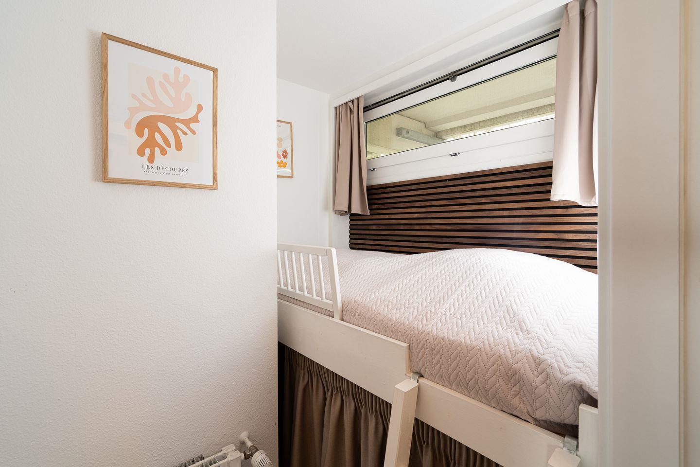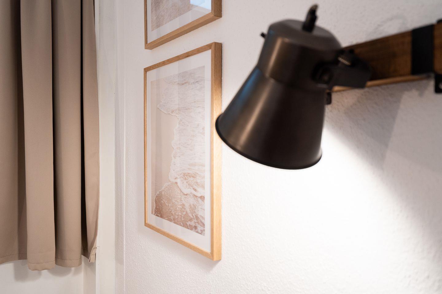 Mit einer Fläche von 50 m² bietet die Ferienwohnung ausreichend Platz für bis zu fünf Personen, inklusive zwei Schlafzimmer. Hier können Sie sich nach einem aufregenden Tag am Strand zurückziehen und die wohltuende Ruhe genießen. Im ersten Schlafzimmer steht ein bequemes Doppelbett, im zweiten Schlafzimmer ein Hochbett für eine Person. Das Wohnzimmer mit einer gemütlichen Sofaecke ist ideal, um entspannte Abende zu verbringen, während der Fernseher für Unterhaltung sorgt. Auf dem Sofa mit Schlaffunktion ist Platz für zwei weitere Personen.