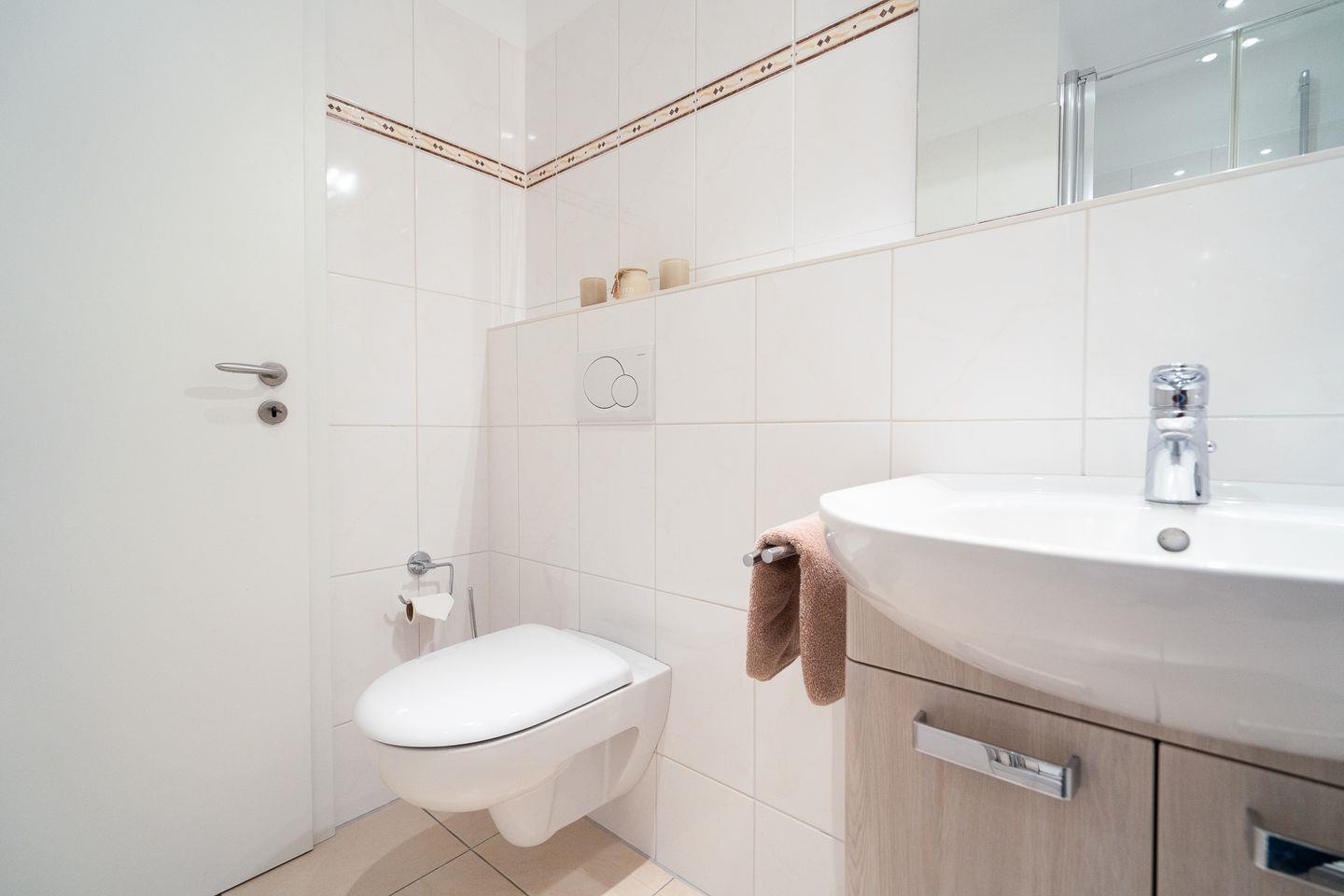 Die voll ausgestattete Küche lässt keine Wünsche offen: Sie finden hier einen Cerankochfeld-Herd, einen modernen Backofen, eine Spülmaschine, einen Kühlschrank mit Gefrierfach sowie eine Kaffeemaschine und einen Wasserkocher. Auch genügend Geschirr und Besteck ist vorhanden, sodass Sie sich wie zu Hause fühlen können. Der Essbereich ist bestens geeignet, um gemeinsam Mahlzeiten zu genießen, die Sie in der offenen Küche zubereiten können. Das Badezimmer ist mit einer Dusche ausgestattet, während ein Haartrockner für Ihren Komfort sorgt.