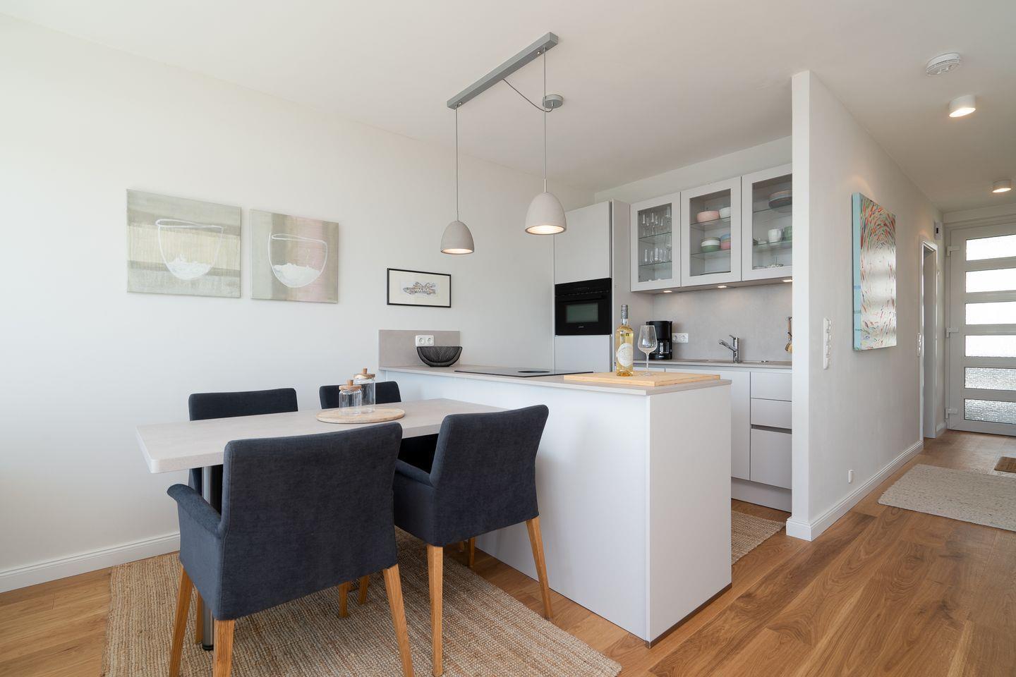 Das App. 115 liegt im 2. Stock in einer attraktiven Ferienanlage, nur 50 Meter vom Sandstrand entfernt und ist für 2 Personen geeignet. Es bietet einen überdachten Balkon mit außergewöhnlichem Meerblick, eine offene Küche und ein gemütliches Wohnzimmer mit Esstisch und Sofaecke. Die Küche ist mit Backofen, Herd und Spülmaschine ausgestattet, das Schlafzimmer mit bequemen Doppelbett. Modernes Bad mit bodengleicher Dusche. PKW-Stellplatz inklusive.