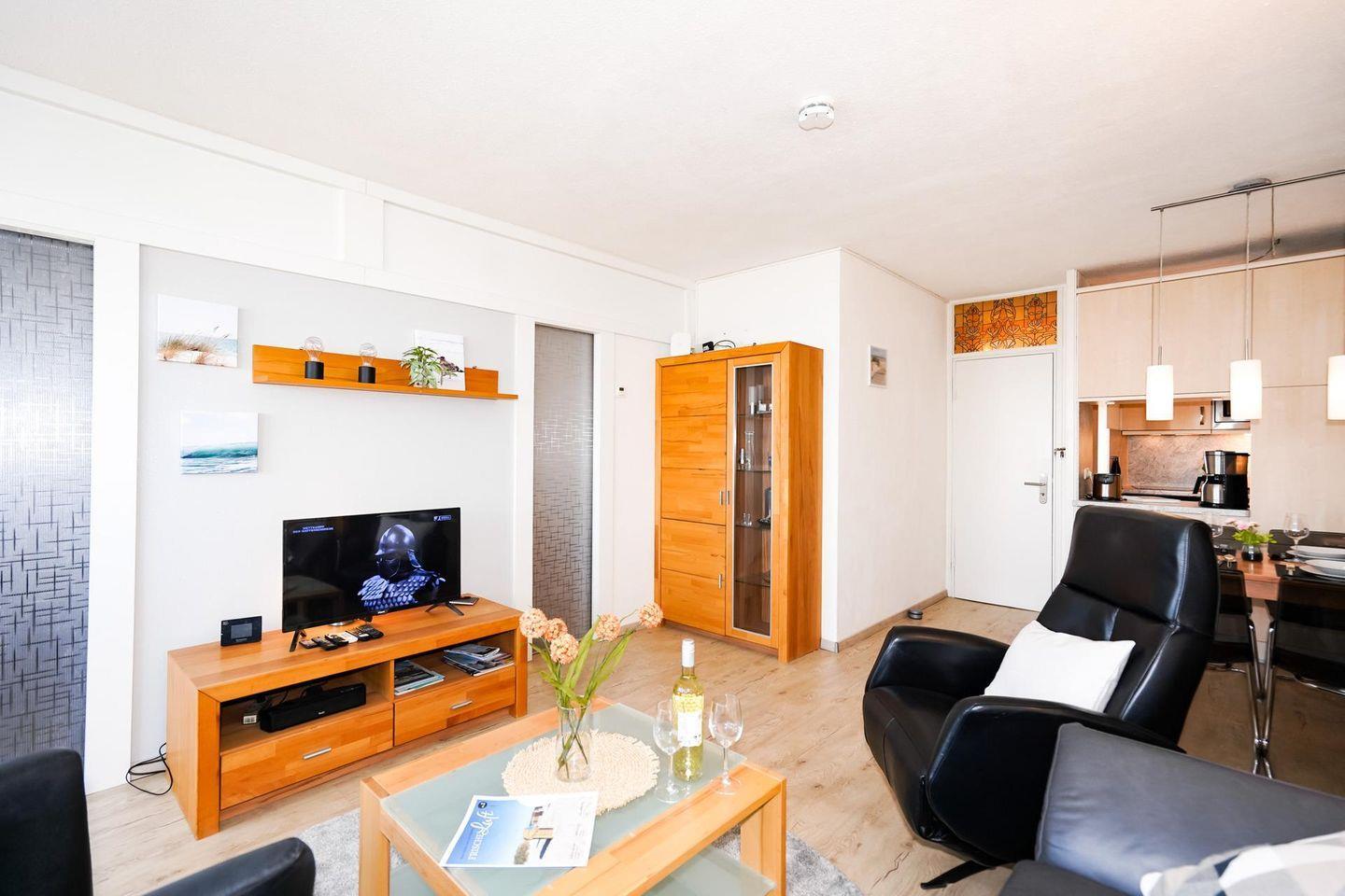 Schönes 42 qm Apartment im 9. Stock mit Ausrichtung zur Ostsee mit traumhaftem Meerblick auf die Lübecker Bucht. Die Ferienwohnung ist gut ausgestattet mit einer hochwertigen Ledergarnitur und zwei passenden Sesseln, einem verglasten Balkon (teilweise oder komplett zu öffnen) mit Frühstückstisch und Sitzgelegenheit. Ihr neuer Lieblingsplatz am Meer. Eine gut ausgestattete Küche, mit Geschirrspüler, Mikrowelle und allem, was man im Urlaub benötigt.