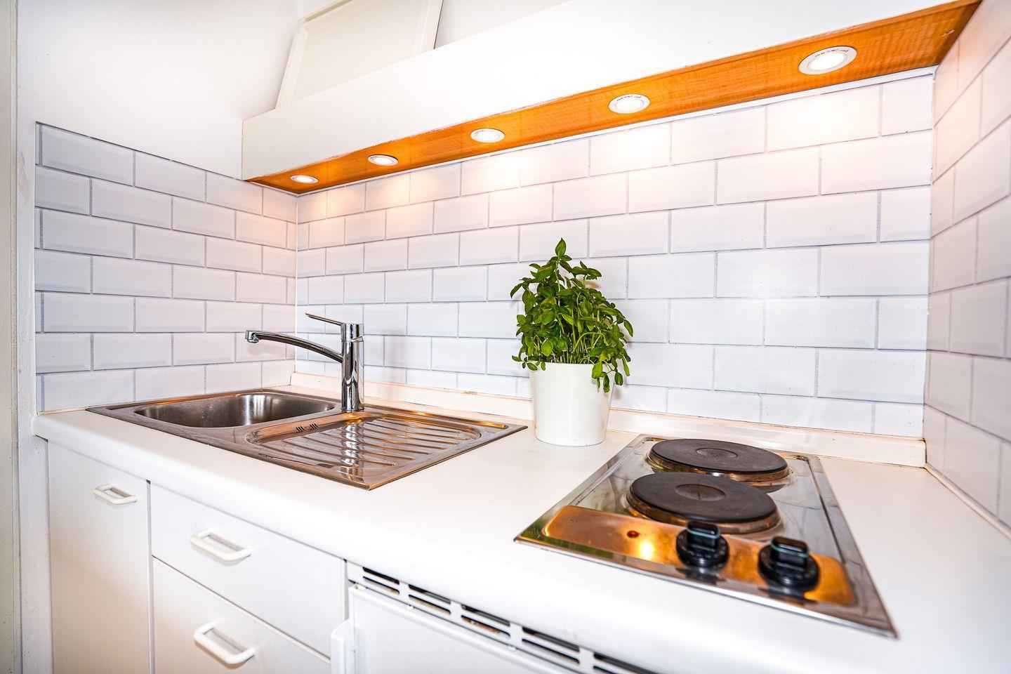 Der offene Küchenbereich ist mit einem 2-Platten-Herd, Kühlschrank mit Gefrierfach, Mikrowelle, Wasserkocher, Kaffeemaschine, Küchenutensilien sowie Geschirr und Besteck vollständig ausgestattet und erlaubt die unkomplizierte Zubereitung aller Mahlzeiten. Ein integrierter Esstisch sorgt für gesellige Stunden. Im Wohnzimmer laden ein bequemes Sofa und zwei Fernseher zum Entspannen ein. Warme Temperaturen sind durch eine effiziente Heizung und die Bereitstellung von warmem Wasser gewährleistet.