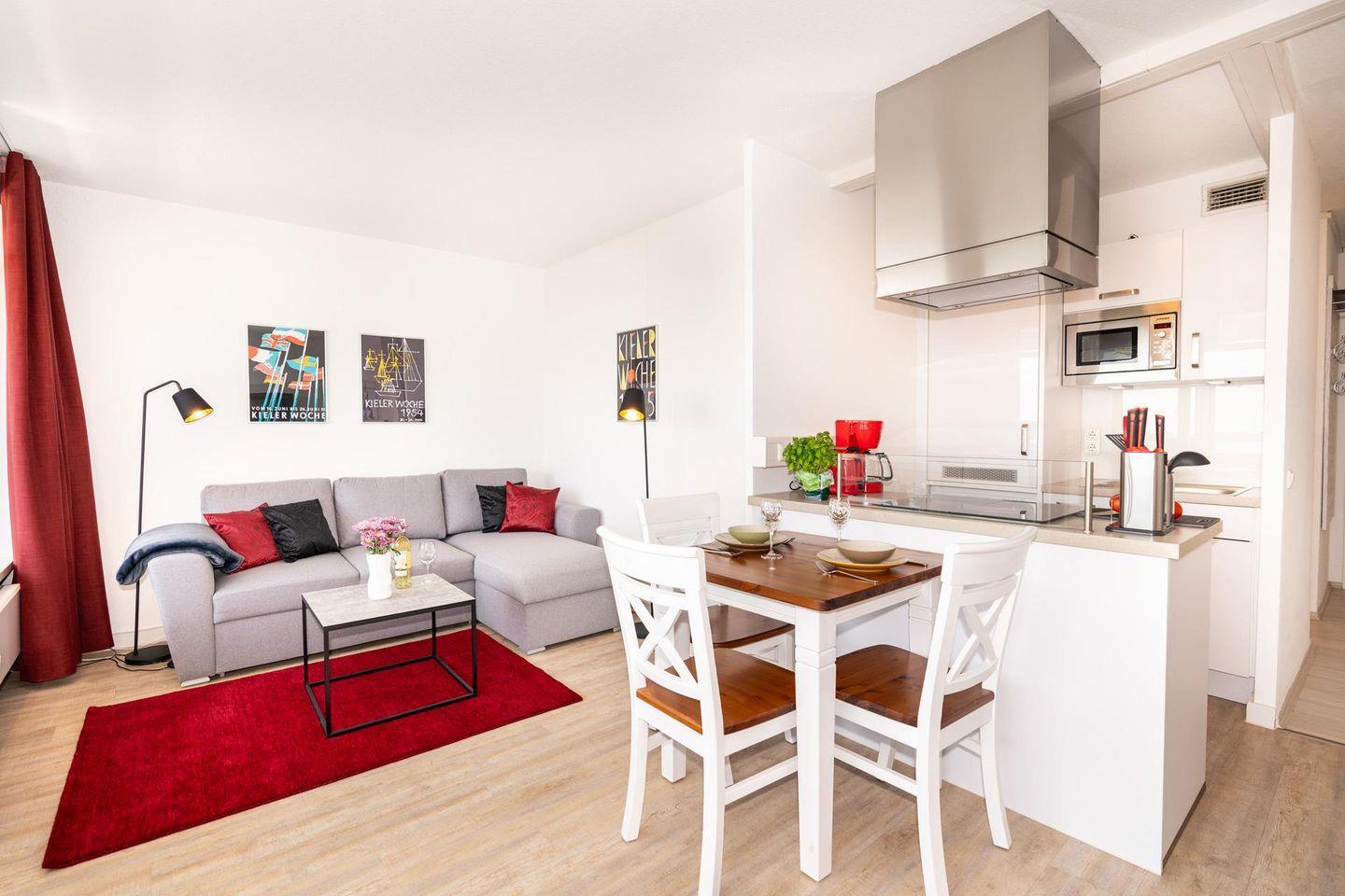 Der beliebte Freizeitpark Hansa-Park ist in wenigen Minuten fußläufig erreichbar – und dennoch hört man ihn nicht, denn das Apartment liegt auf der abgewandten Seite der Anlage.