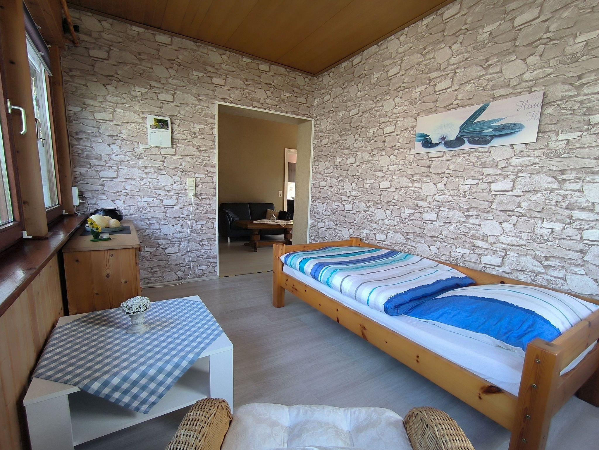 Im Anbau eines großen Bauernhofgebäudes erholen Sie sich auf knapp 65qm: vom großzügigen Eingangsbereich geht gleich das Bad mit Tageslicht, Toilette, Dusche und Waschtisch ab. Das Wohnzimmer ist mit Sofa, elektrischem Sessel, TV und Esstisch ausgestattet. Hiervon gehen zwei Schlafzimmer ab: Im großen Schlafzimmer stehen ein Kleiderschrank und zwei große Betten (1,40x2,00m): je nach Vorliebe der Gäste einzelnstehend oder zusammengestellt mit Matratzenbrücke. Der helle Wintergarten ist nicht mit einer Tür vom Wohnzimmer abgetrennt, kann jedoch auch als Schlafzimmer genutzt werden: hier steht ein weiteres Bett (0,90x2,00m). Bis zu drei Erwachsene finden also einen gemütlichen Schlafplatz. Besonders familienfreundlich: Kinder bis 10 Jahre übernachten kostenfrei.
