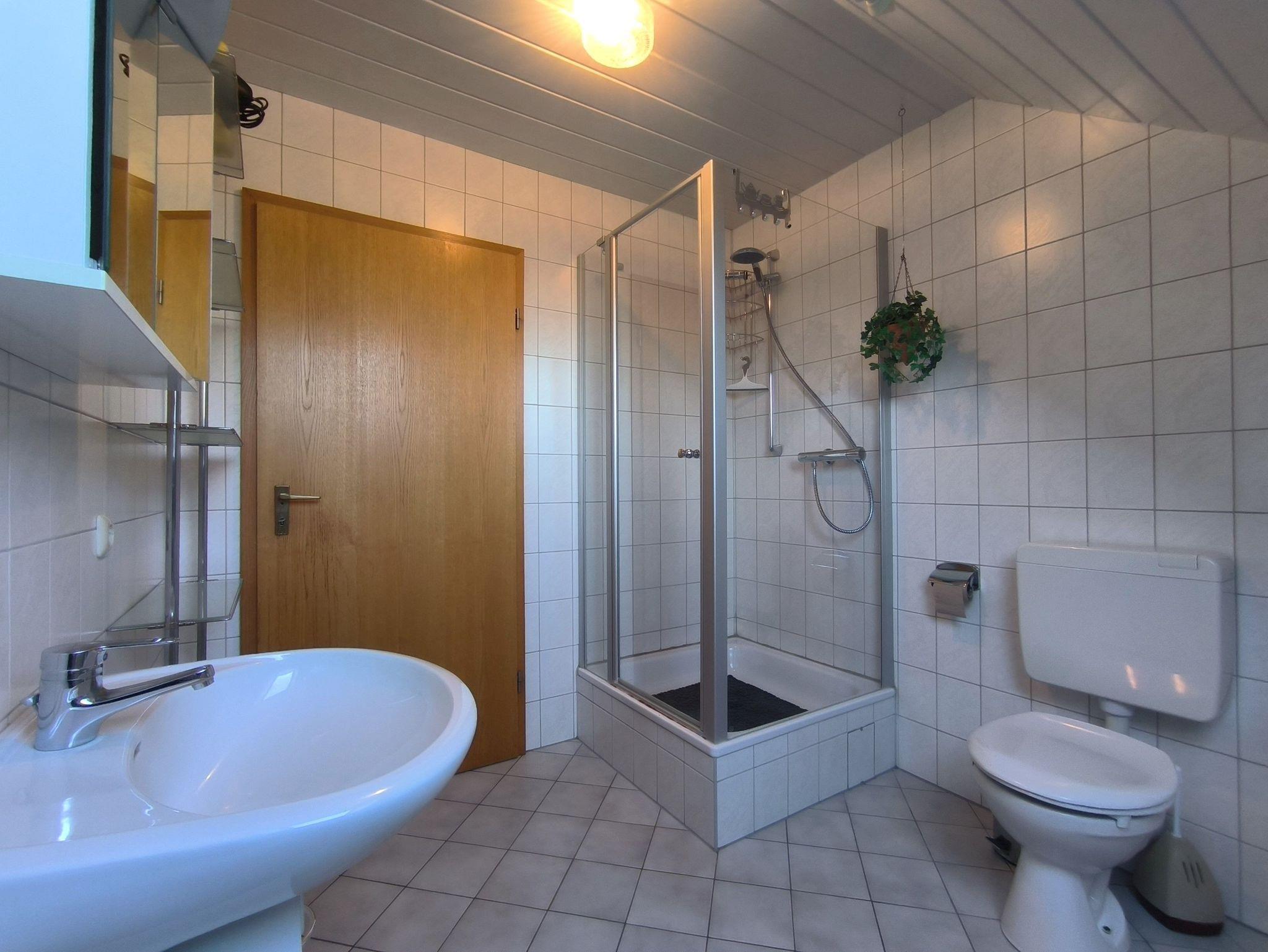 Durch die gemeinsame Haustür gelangen Sie zur Treppe, die Sie hinauf in den langen Flur der Wohnung führt: am Ende des Flures finden Sie die gut ausgestattete Küche mit Esstisch, Spülmaschine, Mikrowelle, Kaffeemaschine, Toaster und viel Zubehör zum Zubereiten leckerer Urlaubsmahlzeiten. Von der Küche gelangen Sie über eine kleine Treppe auf den großen, sonnigen Balkon mit Tisch, Stühlen und einem Sonnenschirm. Gleich nebenan liegt das Schlafzimmer mit Doppelbett (1,80x2,00m), das mit Außenrolläden verdunkelbar und mit einem Insektengitter ausgestattet ist. Am anderen Ende des Flurs liegt das große Wohnzimmer mit gemütlicher Sitzecke, TV und einem Tisch zum Spielen, Essen oder Arbeiten. Das Badezimmer mit hellem Tageslicht ist mit einer Dusche, Waschtisch und WC ausgestattet. Das zweite Schlafzimmer liegt wie das Bad unter der leichten Dachschräge: ein Bett des Maßes 1,90x2,00m bietet Platz für ein Kind oder eine kleine, erwachsene Person. Ein bis zwei weitere Kinder oder Jugendliche können es sich auf dem Schlafsofa im Wohnzimmer gemütlich machen (1,30x1,90m): Kinder bis zum Alter von 5 Jahren sind herzlich willkommen und reisen kostenfrei: auf Wunsch können auch ein Reisebett und ein Hochstuhl zur Verfügung gestellt werden. Eine Spielzeugecke und Brettspiele sorgen für Urlaubspaß.