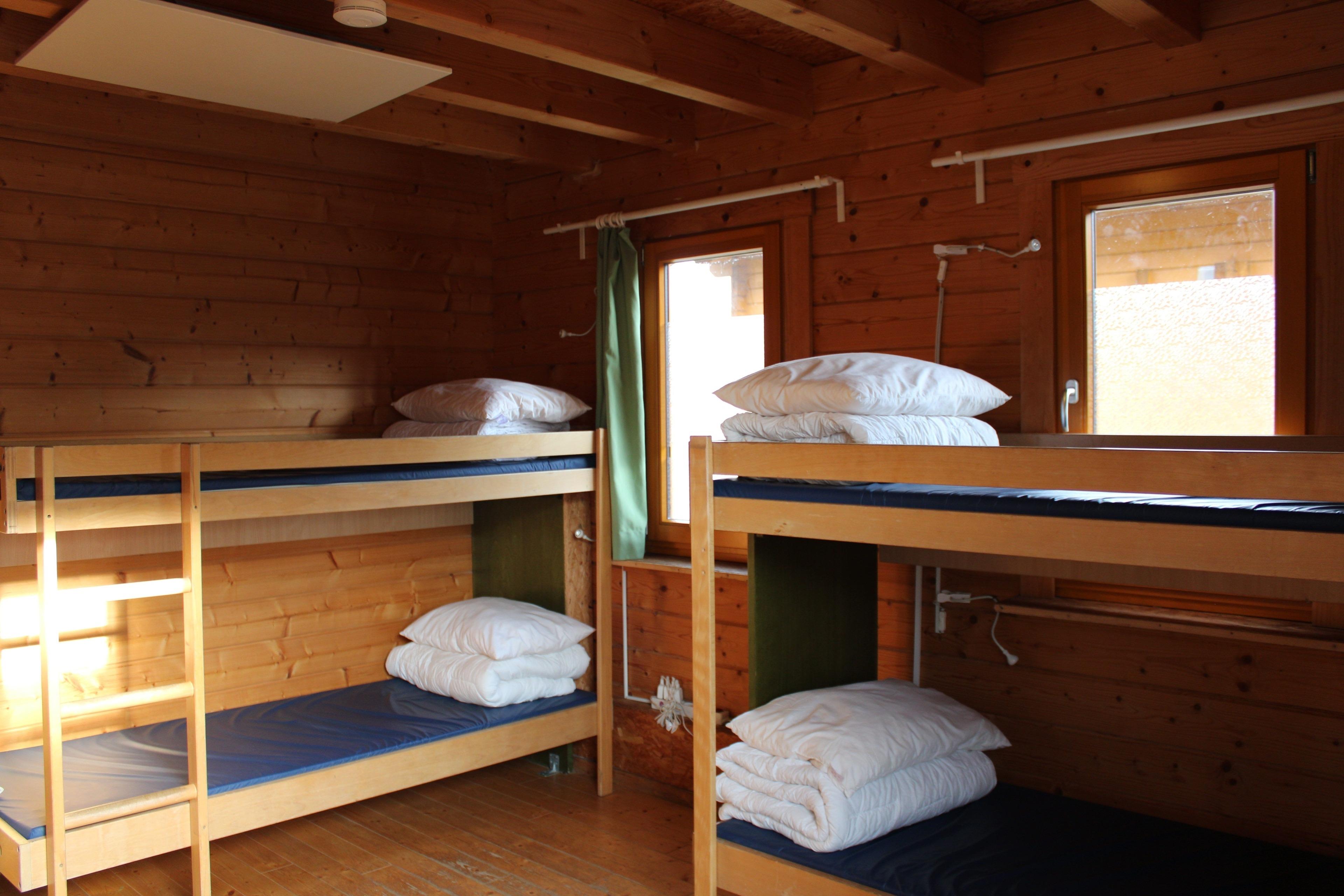 Das Blockhaus besteht im Erdgeschoss aus einem Aufenthaltsbereich mit kleiner Kochzeile, getrennten Räumen mit WC und Dusche, einem Doppel- und einem Vierbettzimmer (Doppelstockbetten) sowie im Dachgeschoss aus einer offenen Empore mit 6 Betten. Das Haus ist zweckmäßig, schlicht eingerichet.
