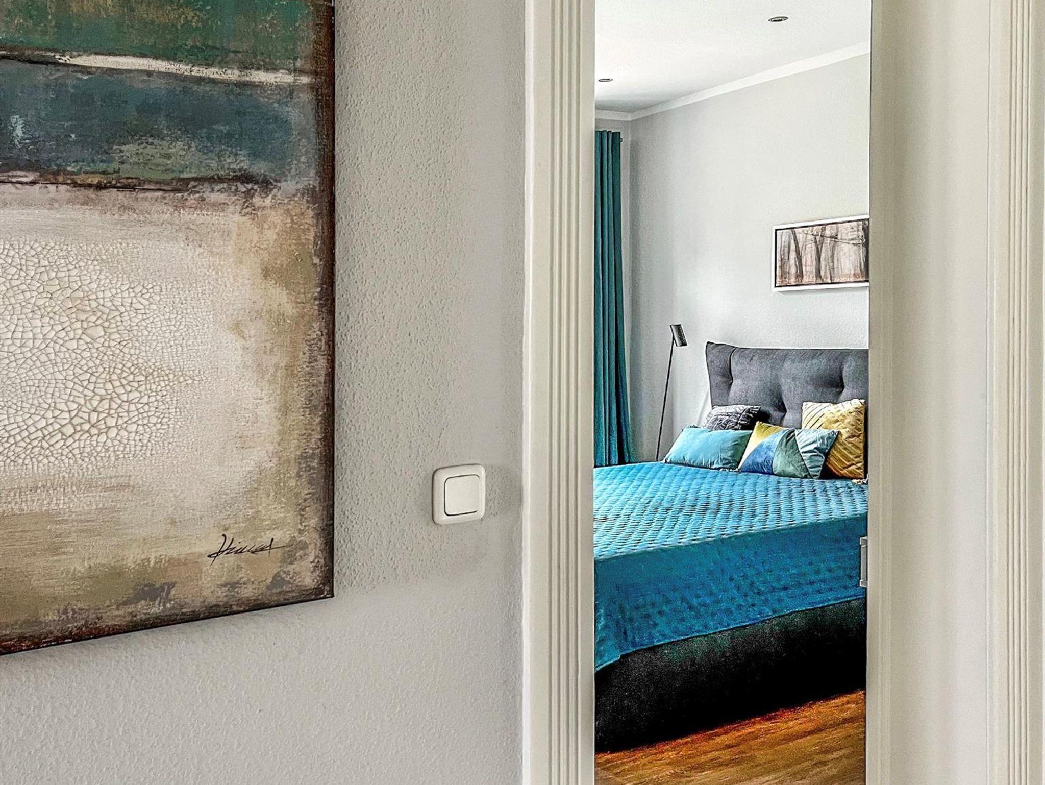 die EINS: Die Große mit dem etwas Mehr. 5 Zi., 122 qm für 1-4, Boxspringbett, Wasserbett (Gel), 2 Bäder mit Walk-in Dusche od. Badewanne. Bibliothek-Musikzi., Terrasse, Balkon zum Park