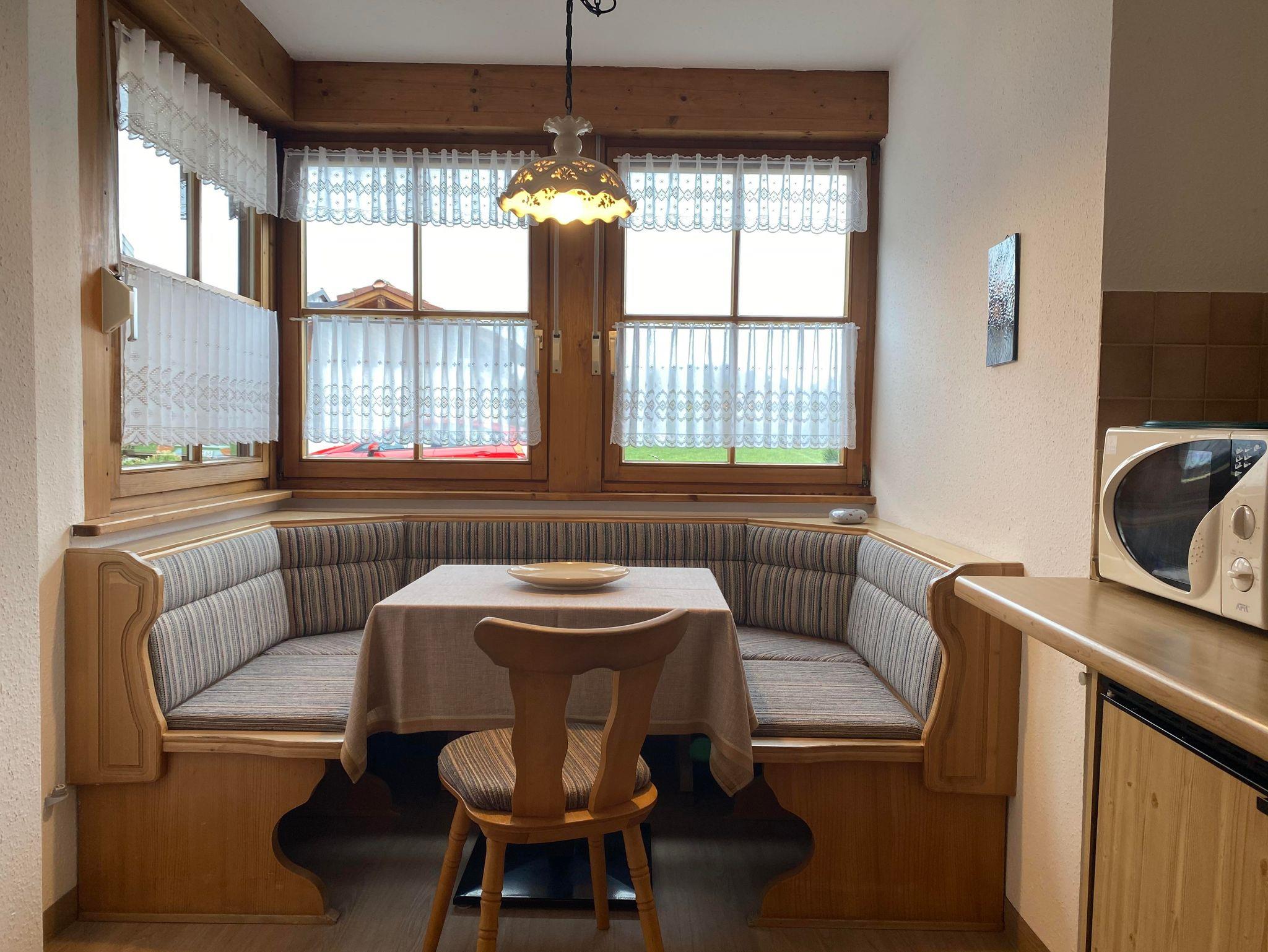 Mit traumhafter Bergsicht und urgemütlichem Südbalkon ist die schöne Wohnung, sie verfügt über ein großes Wohnzimmer mit breiter Schiebetüre zum Balkon, die Polstermöbel im Sitzbereich bestehen aus 2er Sofa und 3er-Sofa (Ausziehsofa), Tisch, Schrank und Fachbild-TV, daneben ist die Küche mit Einbauküche (Spülmaschine) und gemütlichem Erkeressbereich, das Schlafzimmer hat Doppelbetten, Kleiderschrank und Schreibtisch, im weissen Bad ist Wanne, Dusche, Waschbecken und WC, Flur mit Garderobe. In der Wohnung ist angenehme Fußbodenheizung. Die FeWo-Nr. 3 im EG ist gleich.
