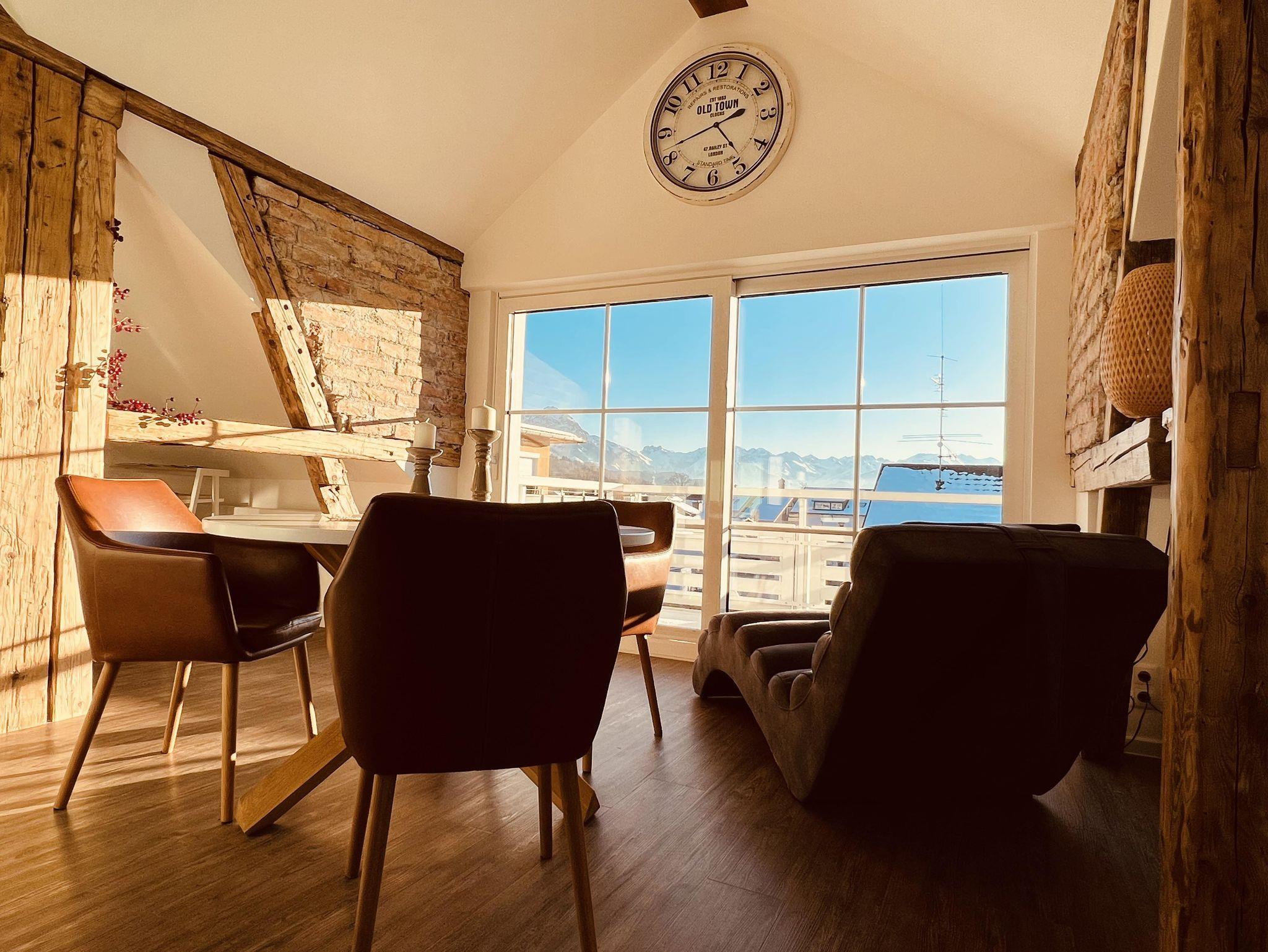 Das Penthouse liegt im Herzen von Sonthofen mitten in der Fußgängerzone. Ein traumhafter Bergblick in die Allgäuer Alpen und Sonne pur erwartet euch hier im 3.OG mit Südbalkon. Auf über 80 qm bietet die Dachwohnung viel Platz zum Erholen. Eine voll ausgestattete Küche, Smart TV und ein drehbarer Kaminofen versüßen den Blick in die Berge. Wer Komfort, einen Hauch Luxus und eine besondere Atmosphäre sucht, wird sich hier mit Sicherheit wohlfühlen.
