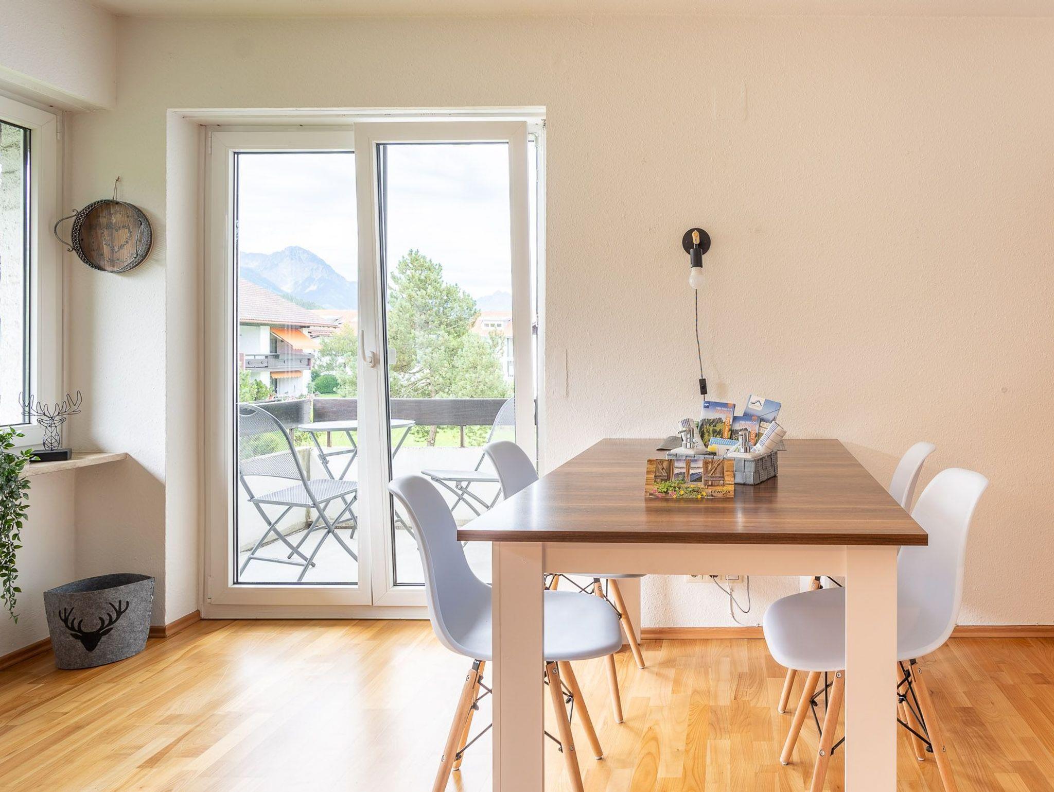 Machen Sie sich schöne Stunden im hellen und offenen Wohnbereich. Verbringen Sie gemütliche Stunden auf dem Süd Balkon mit Aussicht in die Allgäuer Berge, welcher über den Wohnbereich zu erreichen ist.