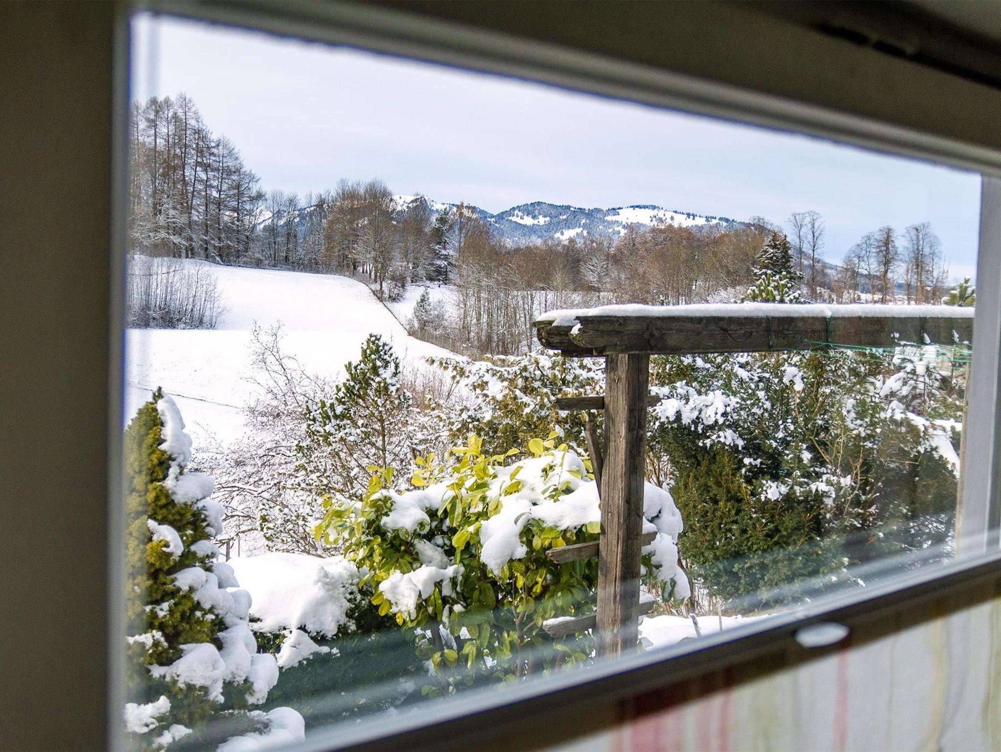 Unser Haus liegt in ruhiger und sonniger Hanglage zwischen einem kleinen Wäldchen, einer Kuhweide und dem Öko-Kurpark der Stadt - direkt am Ortsrand von Sonthofen.