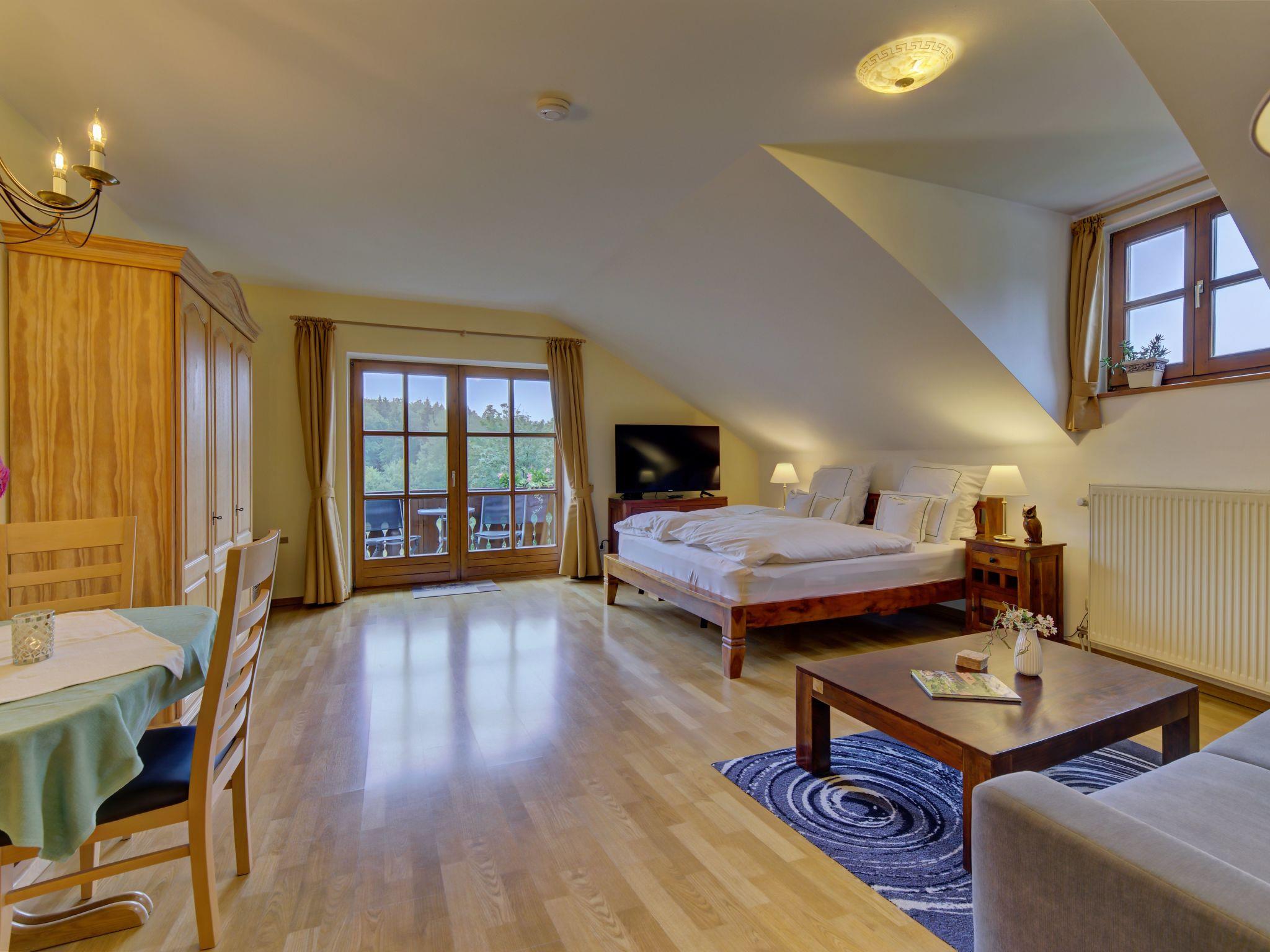 Haus Jägerfleck is situated on a large property in a quiet, idyllic location directly in the national park. Live in harmony with nature. There is a large forest playground in the immediate vicinity. The entrance to the cross-country ski trail and starting point for hikes is right next to the property. The holiday flats are very different and offer something special for every taste. But what they all have in common is cleanliness, modern and high-quality furnishings, where you will feel at home. In the entire living area, we have chosen the furnishings not only for their beauty, but above all for their health and biological aspects. Daylight bathrooms, wooden floors, tasteful wooden furniture and a fully equipped kitchen with dishwasher for your comfort. Use our party house with wood-burning stove for cosy evenings for up to 15 people.