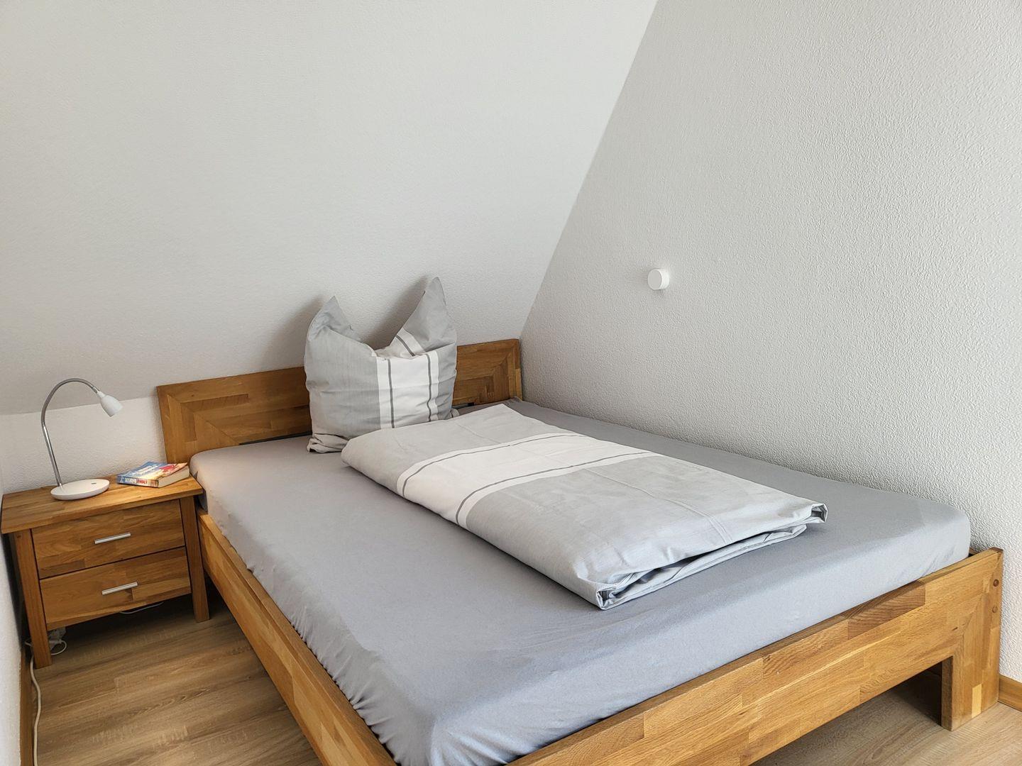 Ebenfalls im Erdgeschoss untergebracht ist ein Schlafzimmer mit komfortablem 140x200cm Doppelbett sowie ein Duschbad mit WC. Das Obergeschoss ist ausgestattet mit zwei weiteren Schlafzimmern. Eines verfügt über ein 140x200cm Doppelbett, ein weiteres ist mit einem 160x200cm Doppelbett ausgestattet. Das große Schlafzimmer verfügt über Zugang zum Balkon und ist zudem ausgestattet mit einem eigenen Flachbild-TV. Weiterhin ist ein geräumiges Badezimmer mit Badewanne und WC auf der Etage untergebracht.