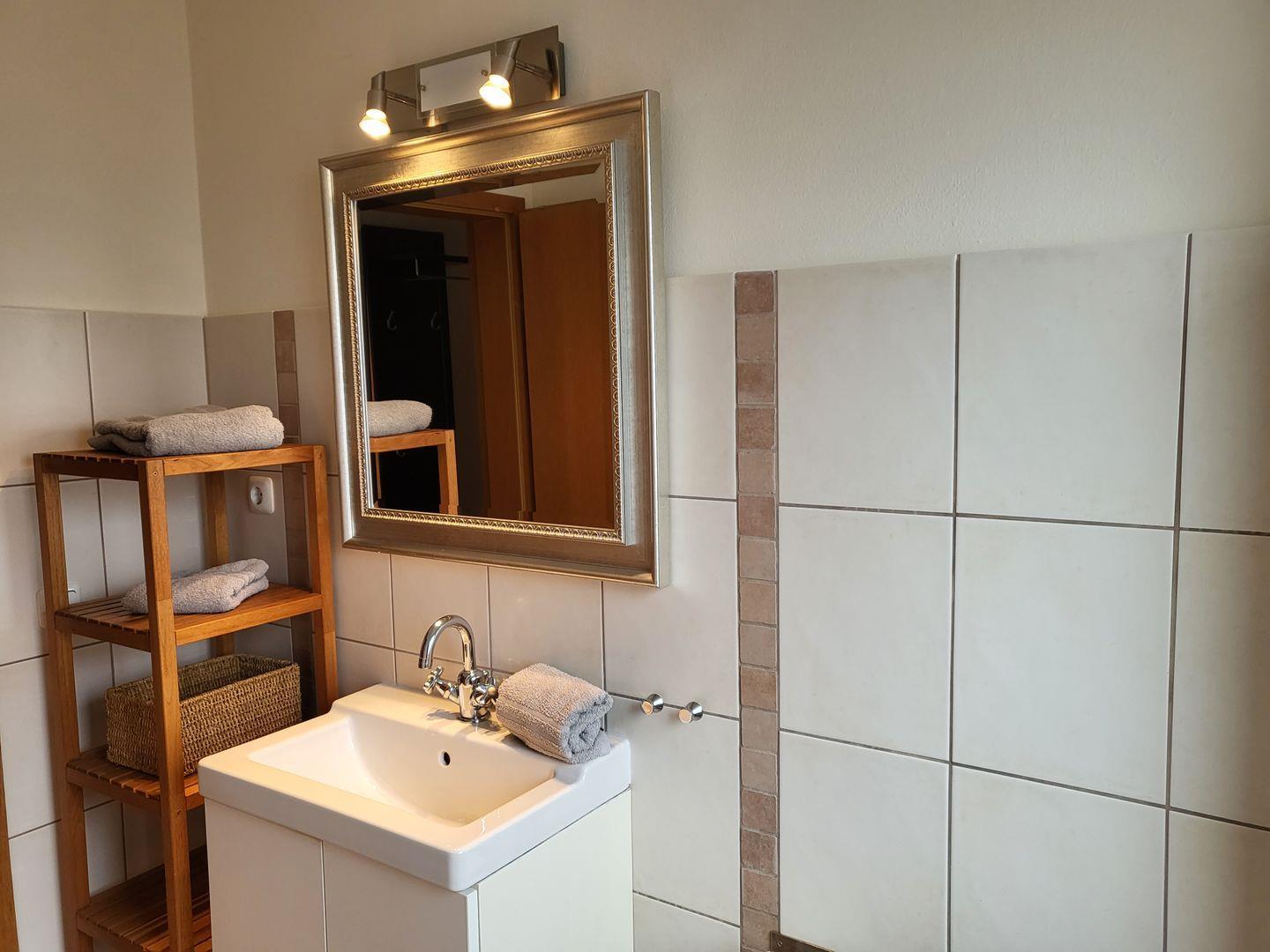 Ebenfalls im Erdgeschoss untergebracht ist ein Schlafzimmer mit komfortablem 140x200cm Doppelbett sowie ein Duschbad mit WC.