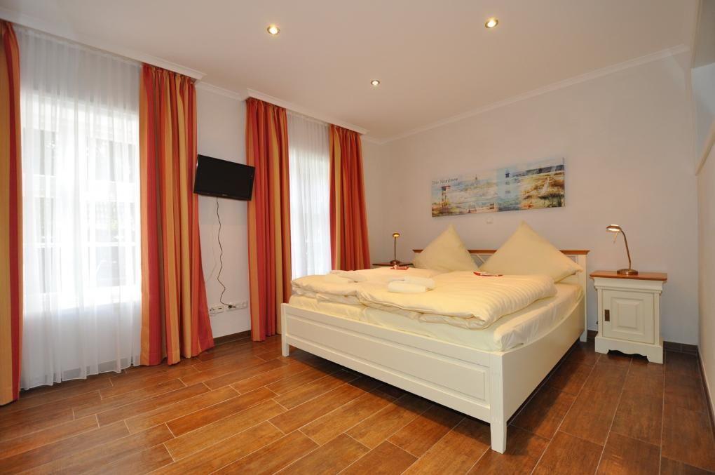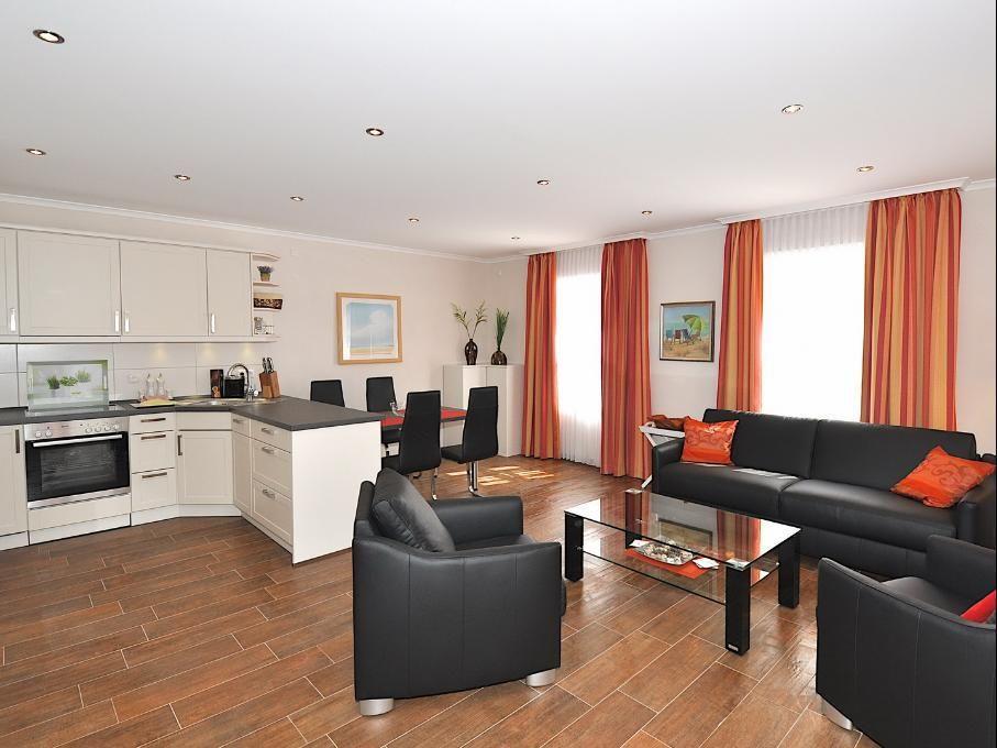 Das Appartement ist mit einer Fußbodenheizung ausgestattet und auf der Terrasse in Westausrichtung finden Sie Gartenmöbel und einen Strandkorb.