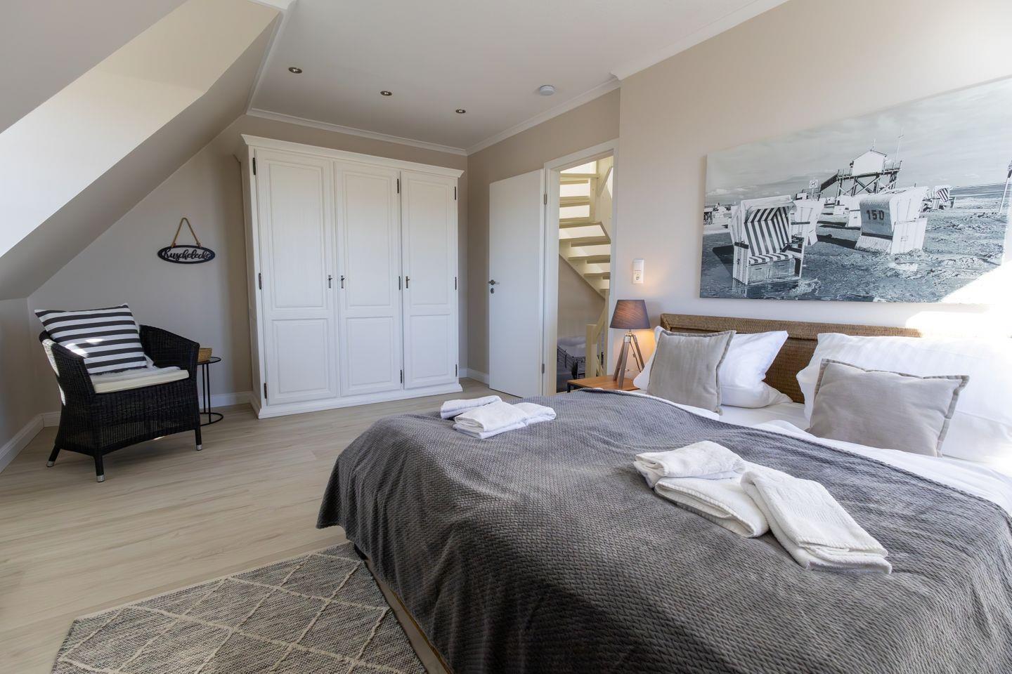 Dachgeschoss: ein Schlafzimmer mit Doppelbett (160 x 200 cm)
