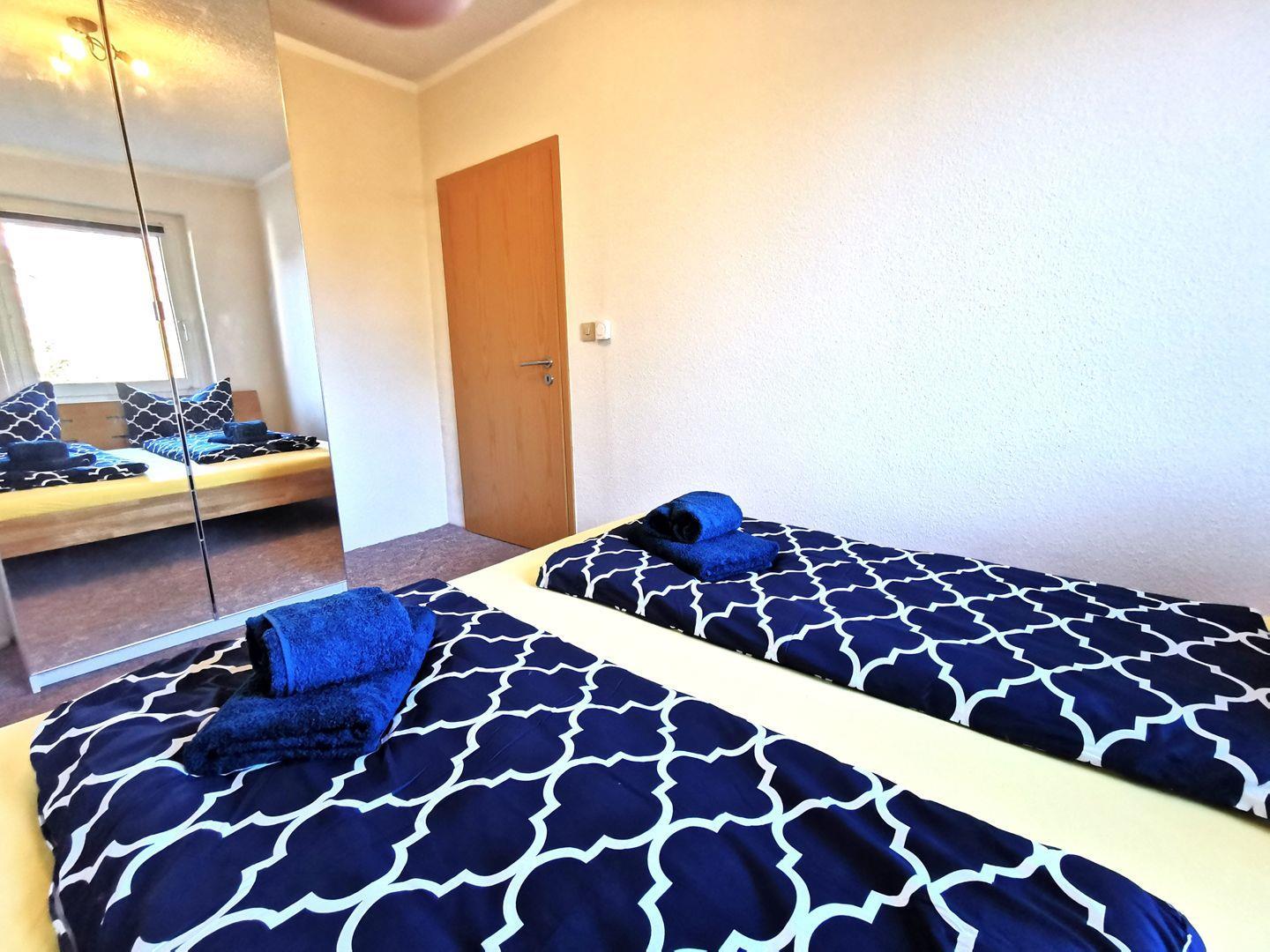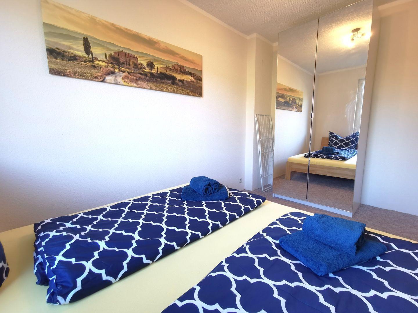Sie verfügt über ein Schlafzimmer mit XXL-Doppelbett, einem Wohnzimmer mit großem Smart TV und bequemen Sofabett, Badezimmer mit Dusche, WC und Waschmaschine und eine Küche mit Esstisch.