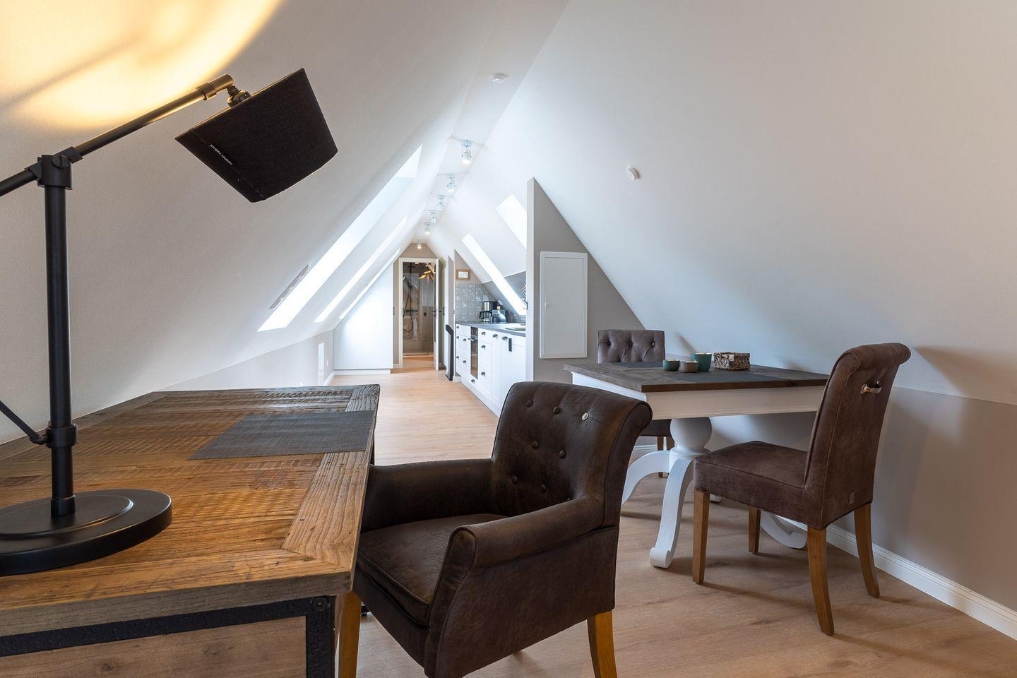 Das luxuriöse Loft Appartement "Wobbe" in dem "Haus Böhl" liegt im Dachgeschoss und verfügt über ca. 40m² Wohnfläche. Es bietet Platz für 1-2 Personen.