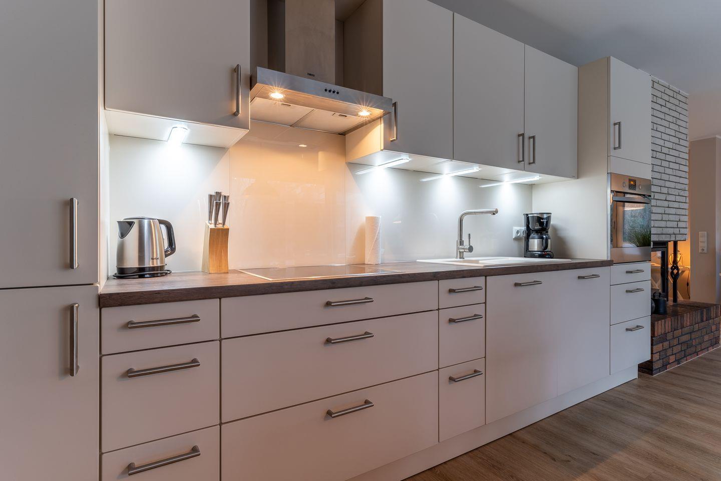 Das App. "Ording" im Ferienhaus Rückenwind verfügt über ca. 100 m² Wohnfläche und bietet Platz für 1-6 Personen. Die Wohnung befindet sich im Erdgeschoss und hier befindet sich der lichtdurchflutete und sehr großzügige Wohnraum mit TV, Kamin und einem stilvollen Essbereich, sowie einer modernen Wohnküche. Die Wohnräume sind mit neuen und modernen Möbeln ausgestattet. An den Wohnbereich schließen sich ein Flur mit Garderobe, und ein Duschbad, sowie ein Gäste WC an.