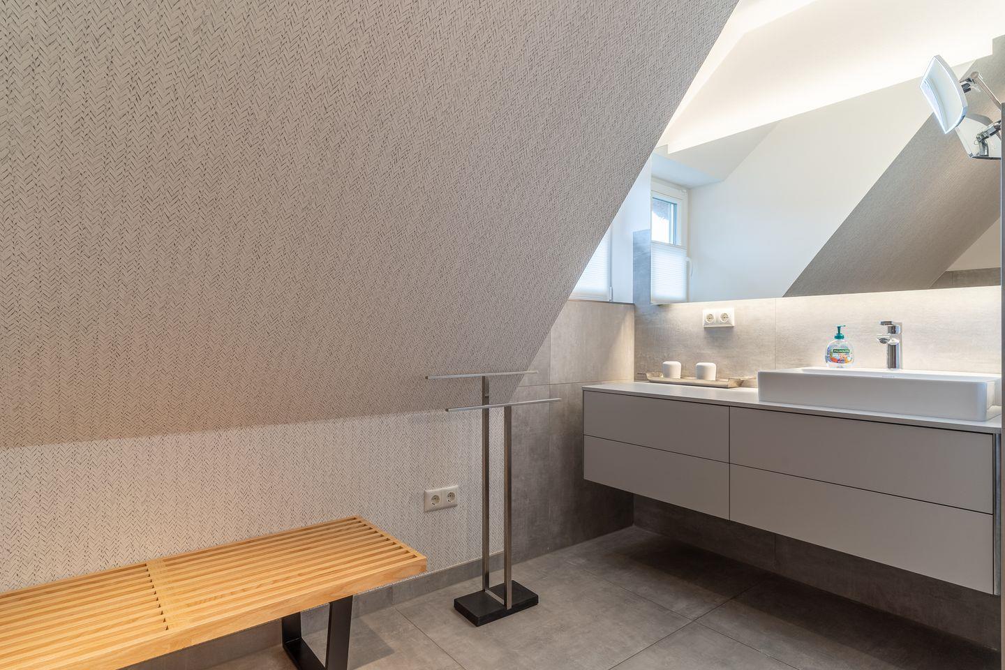 Hier ist eine ruhevolle Erholung garantiert. Darüber hinaus befindet sich im Obergeschoss ein weiteres, luxuriöses Bad mit Dusche. Dieses attraktive Haus lässt keine Wünsche offen und bringt Sie sofort in Urlaubsstimmung.