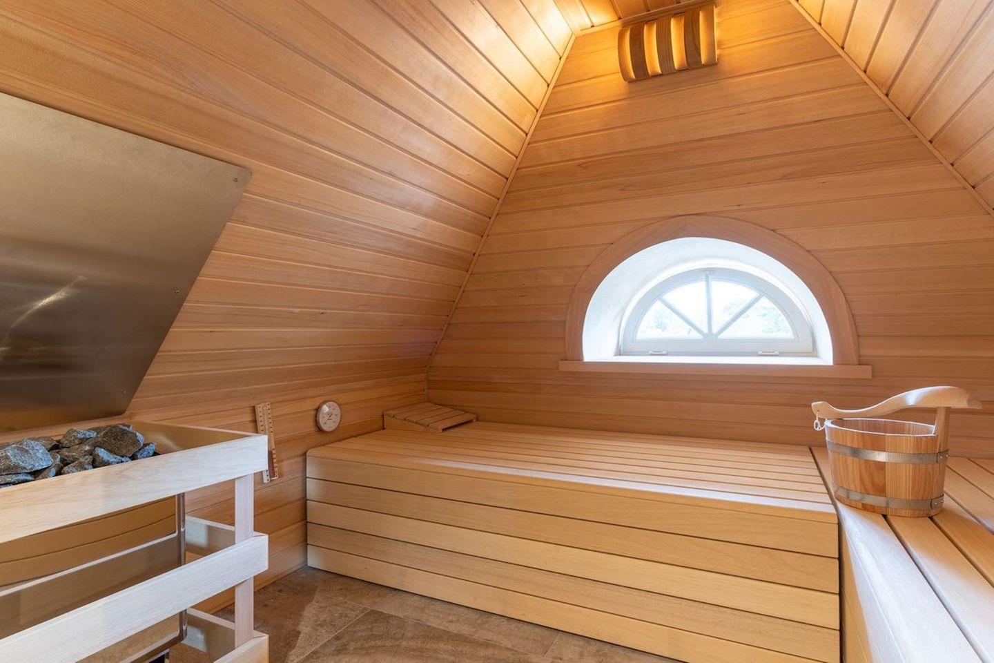 Das volle Wohlfühlprogramm erwartet Sie im Dachgeschoss, hier gelangen Sie direkt in die Sauna.