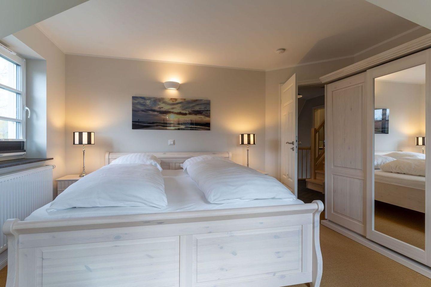 Über eine Holztreppe gelangt man in das Obergeschoss. Die beiden Schlafzimmer - jeweils mit einem Doppelbett - sorgen für ruhevolle Erholung.