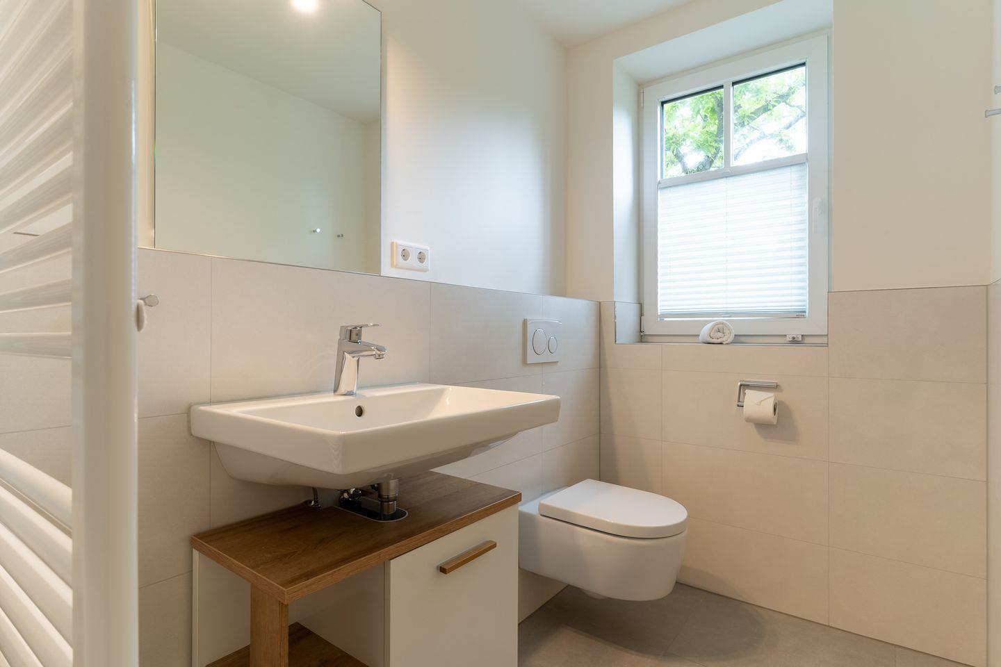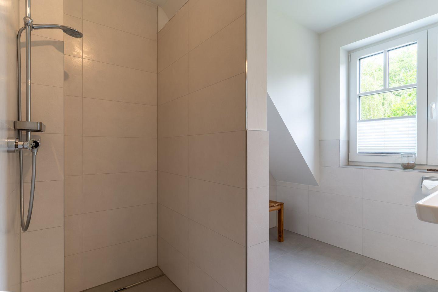 Zwei Doppelschlafzimmer mit je einem eigenen Duschbad, außerdem ein Zweitbettzimmer. Im Obergeschoss befindet sich ebenso ein 3. Duschbad.