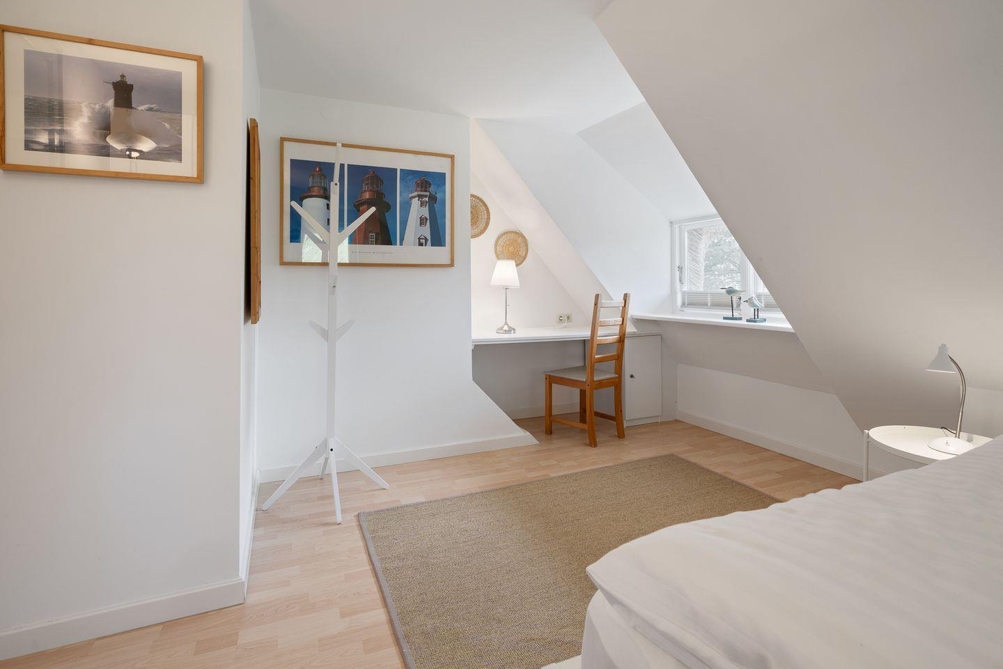 Im Erdgeschoss befindet sich der Wohnraum mit einem gemütlichen Essbereich und Zugang zur Terrasse. Ein Kamin im Wohnraum bietet ebenso einen warmen Charakter. Die separate Küche ist mit allen wichtigen Geräten voll ausgestattet. Im Erdgeschoss ist ebenso ein Duschbad mit Gäste-WC. Im Empfangsgereicht ist ein Flur mit Garderobe und einer weiteren Sitzecke, von hier aus gelangt man in das Obergeschoss. Hier befinden sich 3 Schlafzimmer: ein Doppelschlafzimmer mit 1x Doppelbett, ein Doppelschlafzimmer mit 2x Einzelbetten und ein Schlafzimmer mit 1x Einzelbett. Große Fenster sorgen für viel Licht. Außerdem ist im Obergeschoss ein Bad mit Badewanne.
