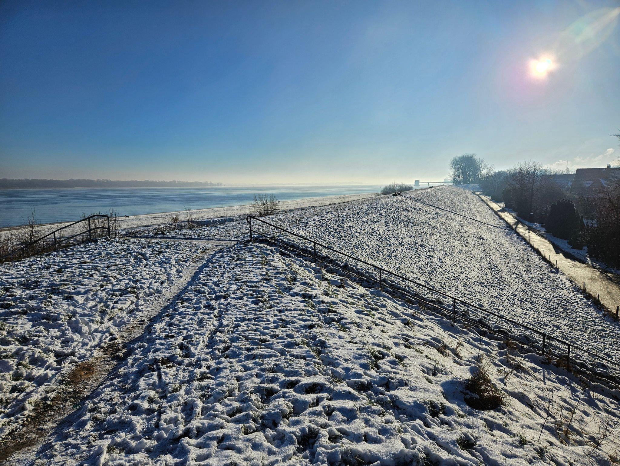 Unmittelbar am Abbenflether Elbdeich und Sandstrand, wo die dicken Pötte des Hamburger Hafens zum Greifen nah vorüberziehen, liegt unser nagelneues Ferienhaus Pagensand, als Ergänzung zu unserer bereits sehr beliebten Ferienwohnung. Genießen Sie die absolute Ruhe inmitten der herrlichen Natur des Kehdinger Landes auf einem eigenen Grundstück! Nur durch eine sehr ruhige Anwohnerstraße, die gleichzeitig Teil diverser Radwege ist, vom Deich getrennt, liegt vor dem Haus die Elbe mit ihrem feinen Sandstrand und den grasenden Schafen. Aus Küche und Wohnzimmer fällt der rückwärtige Blick über die Terrasse und den Garten in die Weite von Wiesen und Feldern, mit traumhaftem Wolkenspiel und romantischen Sonnenuntergängen am Himmel. Das gerade erst fertiggestellte Ferienhaus bietet Ihnen auf ca. 90 m² Wohnfläche mit zwei separaten Schlafzimmern Platz für 4 bis 5 Gäste, ein großzügiges Bad mit ebenerdiger Dusche sowie eine offene Küche mit angeschlossenem Wohn- und Essbereich. Ein hoher Sichtdachstuhl gibt diesem großen Raum eine besonders wohnliche Atmosphäre. Die gesamte Wohneinheit ist barrierefrei und behindertenfreundlich gestaltet. Gerade bei den Hundebesitzern unter den Gästen unserer schon bestehenden Ferienwohnung im ursprünglichen Kapitänshaus, sind der Abbenflether Strand und das Grünland der Deiche äußerst beliebt. Nach ausgiebigen Spaziergängen, Spielen im weichen Sand oder sogar einem erfrischenden Bad in der Elbe, können Sie sich mit Ihrem vierbeinigen Freund in einen abgeschlossenen Garten rund um ein geräumiges Ferienhaus zurückziehen. Zur Entspannung auf der Sonnenterrasse stehen Ihnen dabei natürlich Gartenmöbel, Tisch und Sonnenschirm sowie ein Holzkohlengrill zur Verfügung. Das Ferienhaus verfügt über zwei Kfz-Stellplätze und für Ihre eventuell mitgeführten Fahrräder - die aber natürlich auch vor Ort zu leihen sind - steht eine eigene Garage bereit.