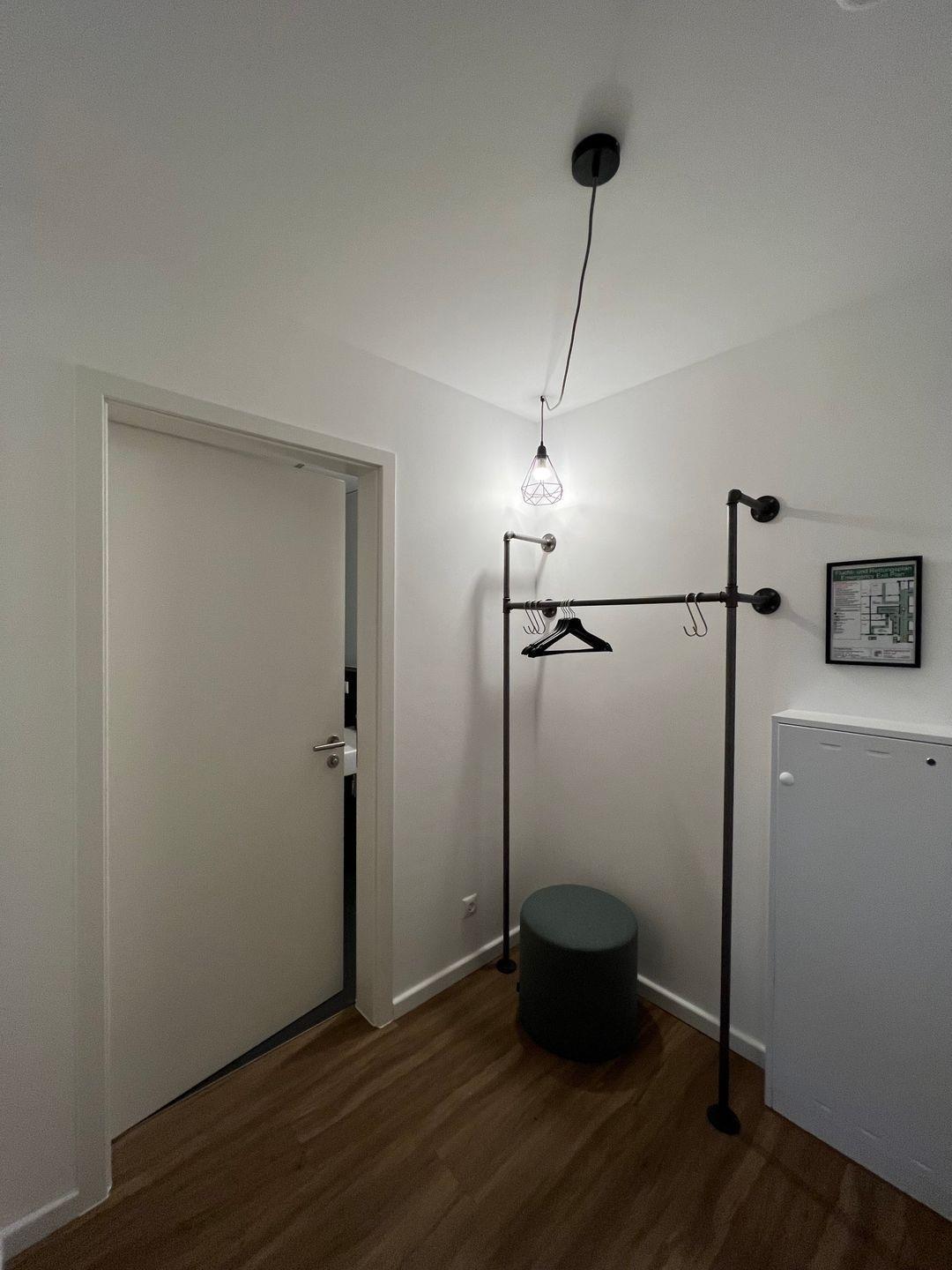 Im Eingangsbereich des Apartments befindet sich eine Garderobe. Innerhalb des Gebäudekomplexes steht dir eine Waschmaschine mit Waschmittel sowie ein Trockner zur Verfügung. Diese kannst du gegen eine Gebühr von jeweils 2,50 € je Wäsche bzw. Trocknung nutzen. Die Bezahlung und Reservierung der Maschinen läuft unkompliziert über die App „WeWash“. Ein Wäscheständer, ein Bügeleisen, ein Bügelbrett sowie ein Staubsauger stehen für dich im Waschraum zur Nutzung bereit.