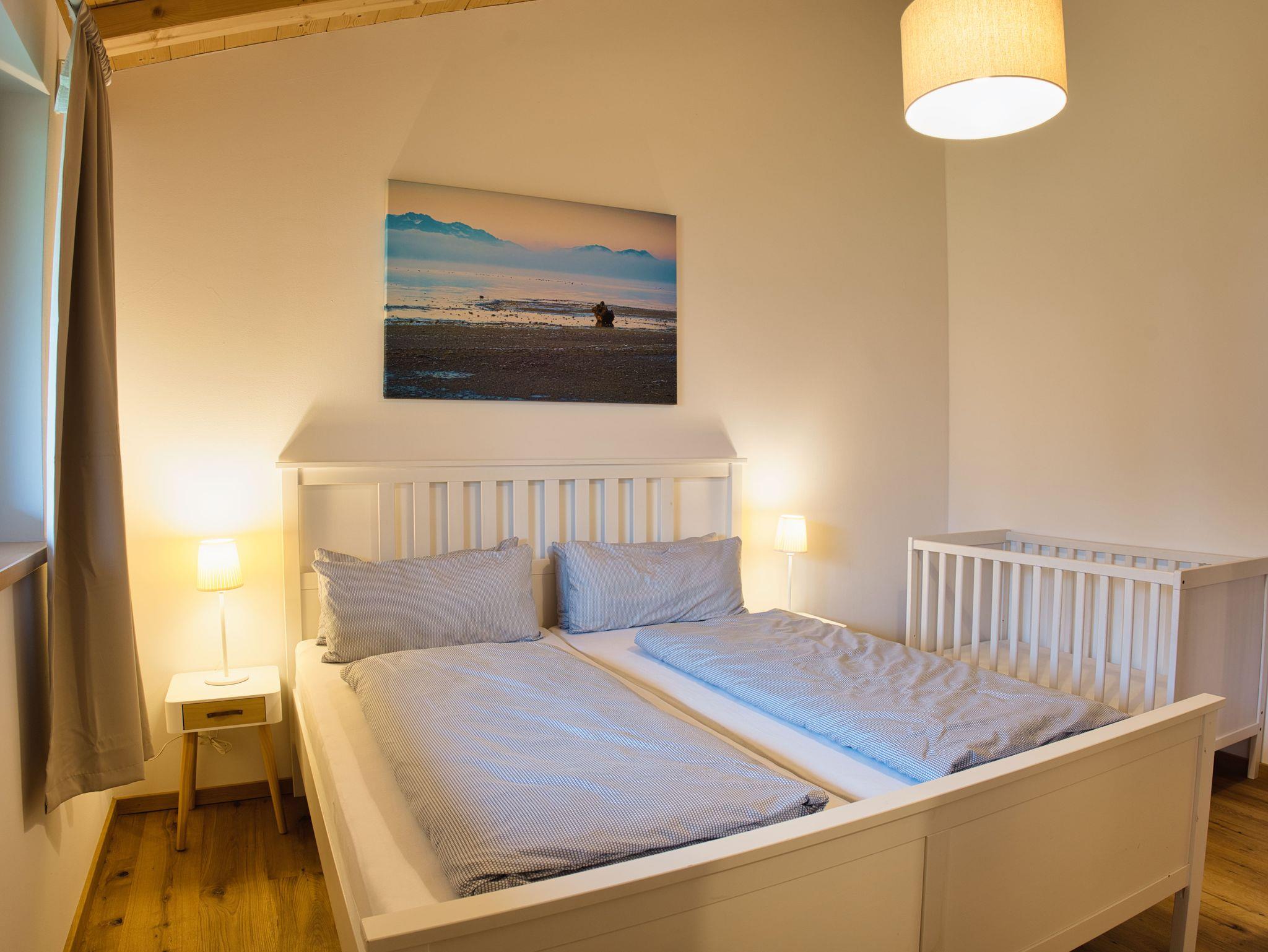 Unsere liebevoll eingerichtete Ferienwohnung (90qm) Neubau im 1. Stock mit Fussbodenheizung liegt ruhig am Waldrand, direkt an den bayerischen Bergen und nur wenige Kilometer vom Chiemsee entfernt- ideal für Naturfreunde, Familien und Ruhesuchende.