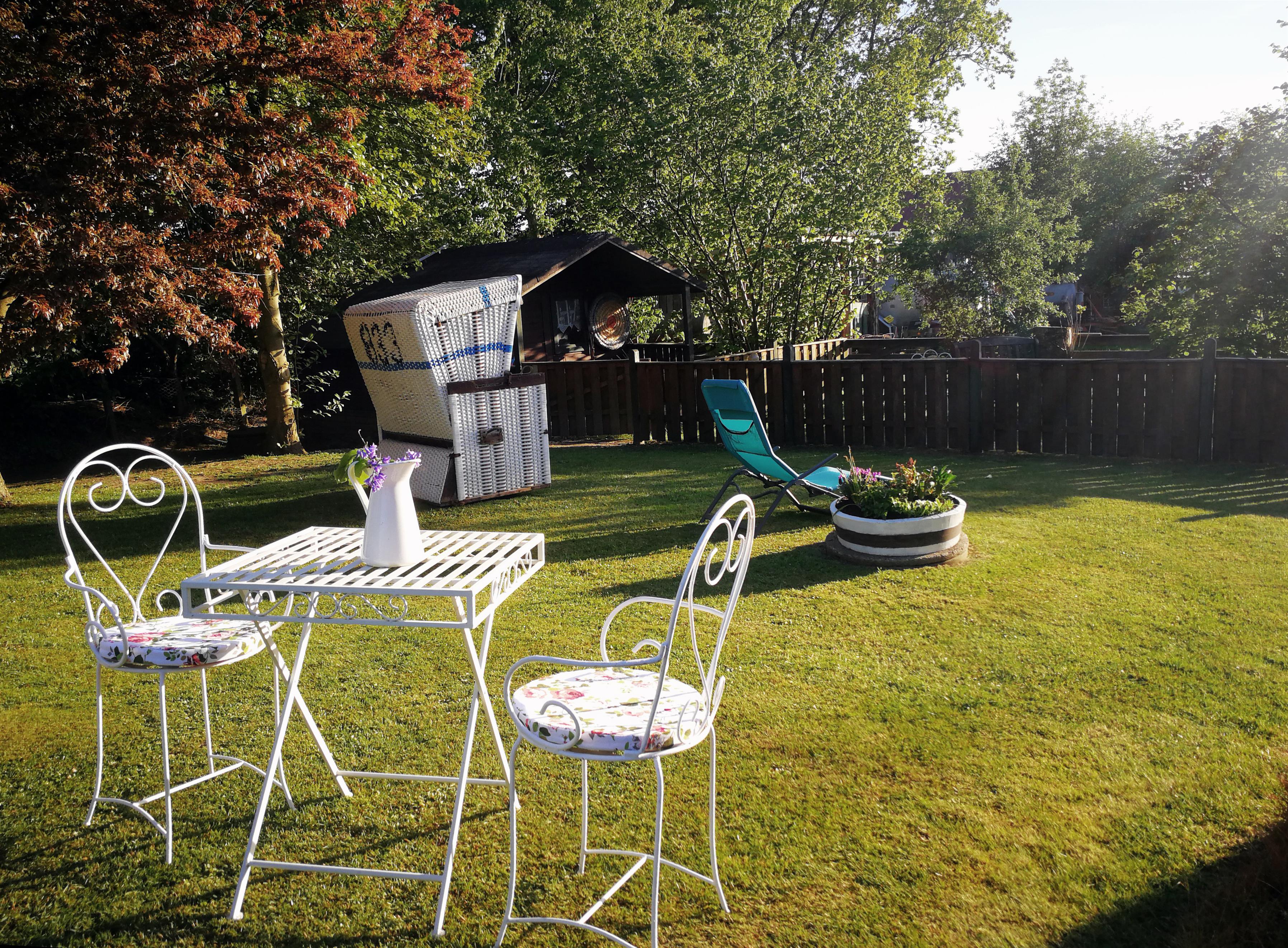 Platz findet ihr auch im großen Garten mit Klönschnackbank, Liegewiese und Gartenmöbeln zum relaxen.