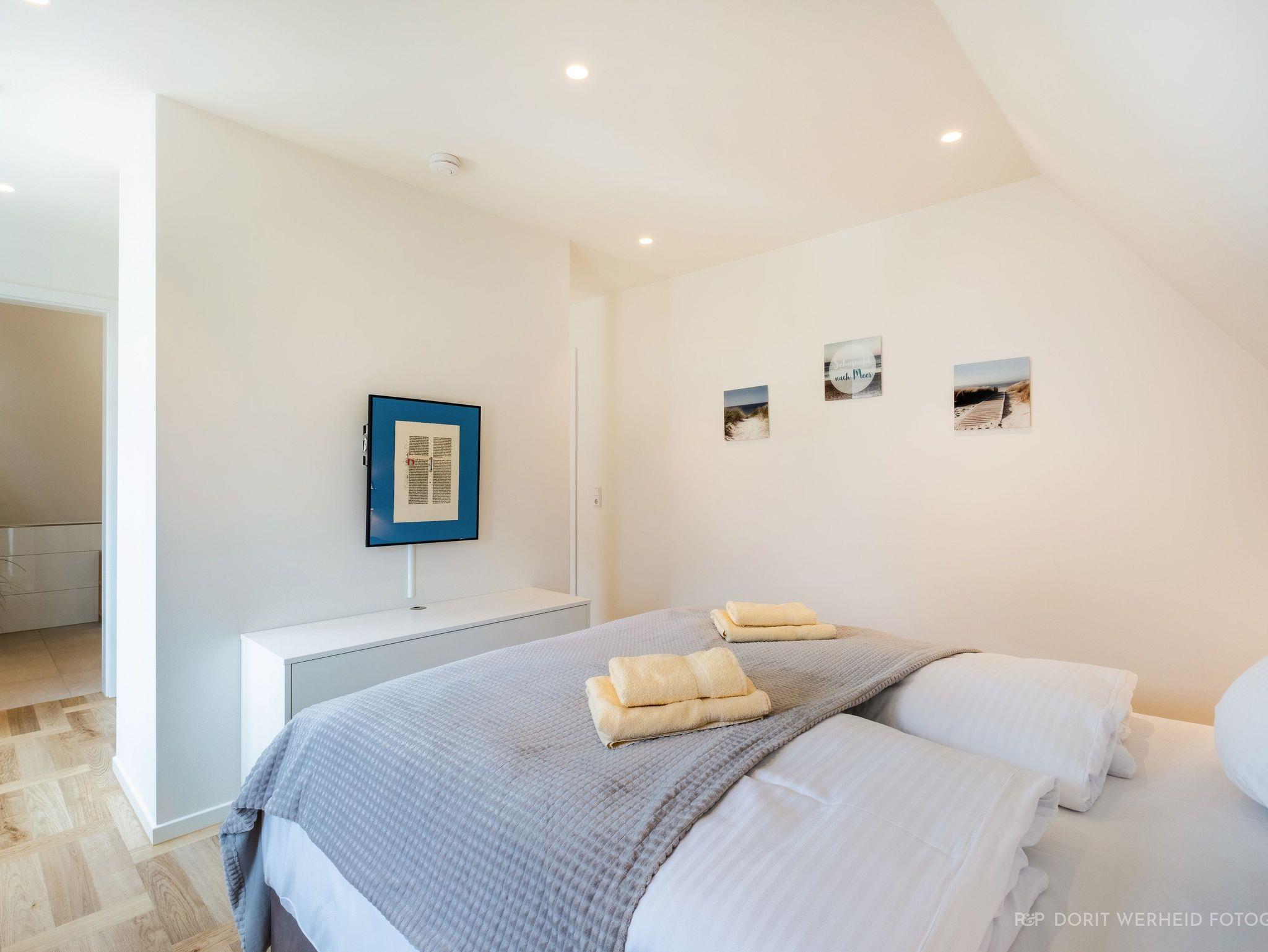 Das Haus verfügt über drei Schlafzimmer mit Boxspring-Doppelbetten. Zwei der drei Schlafzimmer sind mit einem zusätzlichen TV ausgestattet. In einem der Schlafzimmer können die Betten auch getrennt gestellt werden und als Einzelbetten genutzt werden.