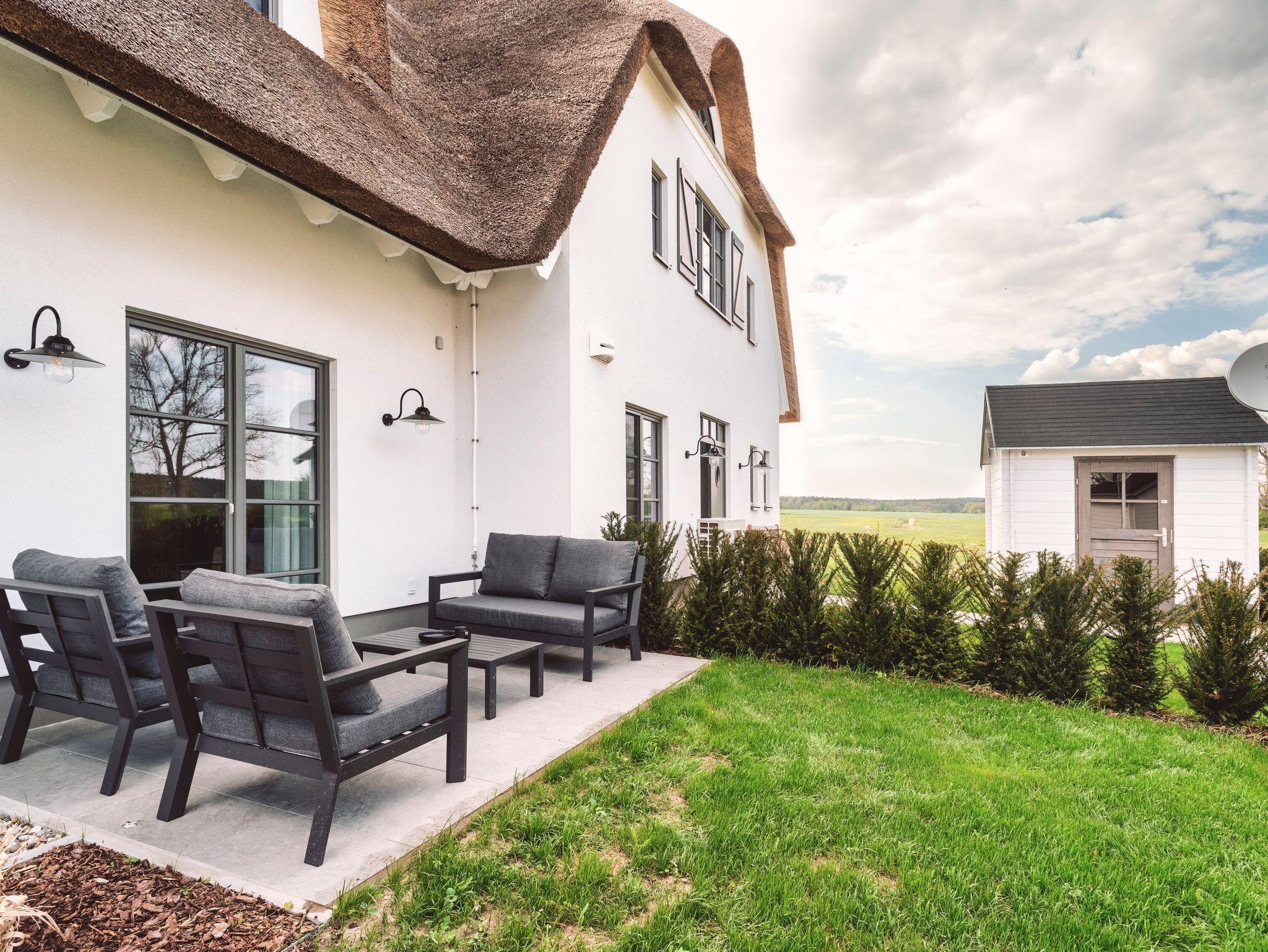 Willkommen in Ihrem exklusiven Haus N° 1 im malerischen Friesenstil! Umgeben von unberührter Natur und idyllischer Ruhe erwartet Sie hier ein traumhaftes Reetdachhaus, das Ihnen einen unvergesslichen Aufenthalt beschert. Die Lage ist perfekt nur wenige Gehminuten trennen Sie vom Haff und der Badebucht, wo Sie entspannte Stunden am Wasser genießen können. Auf großzügigen 130 m² bietet das Ferienhaus Platz für bis zu vier Personen und begeistert mit einer hochwertigen Ausstattung. Edle Echtholzböden und italienische Steinfliesen schaffen eine stilvolle und gemütliche Atmosphäre. Der offene Wohnbereich im Erdgeschoss lädt mit einer komfortablen Sitzgruppe, einem elektrischen Kamin und einem Flachbildfernseher zum Verweilen ein. Die moderne, voll ausgestattete Küche verfügt über eine Kochinsel mit Tresen sowie einen großen Esstisch mit zwei Bänken ideal für gesellige Mahlzeiten. Ein Gäste-WC sowie ein Hauswirtschaftsraum mit Waschmaschine und Trockner sorgen für zusätzlichen Komfort. Im Obergeschoss erwarten Sie zwei gemütliche Schlafzimmer, jeweils mit einem komfortablen Doppelbett (1,80 m x 2,00 m) und einem Flachbildfernseher. Hier können Sie sich zurückziehen und die Erlebnisse des Tages entspannt Revue passieren lassen. Ein Kinderreisebett findet ebenfalls problemlos Platz. Das Haus verfügt über zwei moderne Badezimmer: Das Hauptbad beeindruckt mit einer Badewanne, einer Dusche, einem Doppelwaschtisch und einer entspannenden Infrarot-Sauna, während das zweite Bad als Masterbad direkt an eines der Schlafzimmer angeschlossen mit einer Dusche, einem WC und einem weiteren Doppelwaschtisch ausgestattet ist. Für Ihren Komfort sind die Betten bei Anreise frisch bezogen und Handtücher liegen bereit. Der weitläufige Garten lädt mit zwei Sonnenterrassen dazu ein, die Natur in vollen Zügen zu genießen. Ein gemütlicher Strandkorb bietet den perfekten Platz für entspannte Stunden. Selbstverständlich steht Ihnen kostenloses WLAN zur Verfügung, sodass Sie jederzeit mit Ihren Lieben in Verbindung bleiben können. Ein eigener PKW-Stellplatz (Nr. 30) direkt am Haus, ein abschließbares Fahrrad-Gartenhaus mit Steckdose für E-Bikes sowie eine zusätzliche E-Ladestation auf dem Gelände des Inseldomizils runden das Angebot ab. Erleben Sie unvergessliche Urlaubsmomente in diesem luxuriösen Ferienhaus und lassen Sie sich von der Schönheit der Umgebung und der wohltuenden Ruhe verzaubern. Wir freuen uns darauf, Sie willkommen zu heißen!
