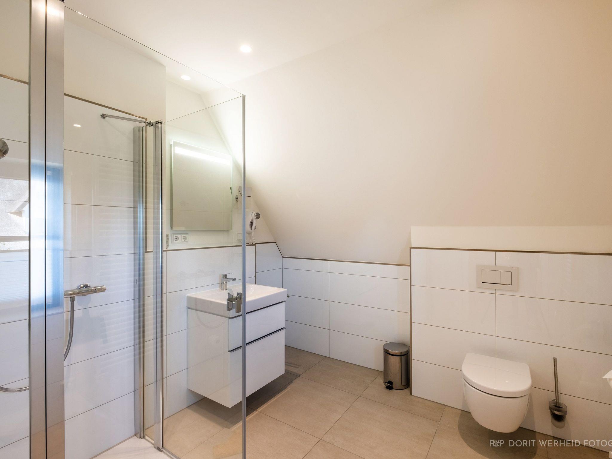 Alle Badezimmer sind mit bodentiefen Duschen, WCs und Waschbecken ausgestattet. WLAN und LAN sind in dem Haus vorhanden.