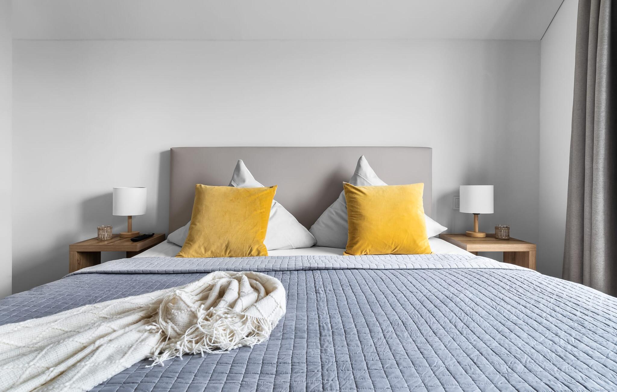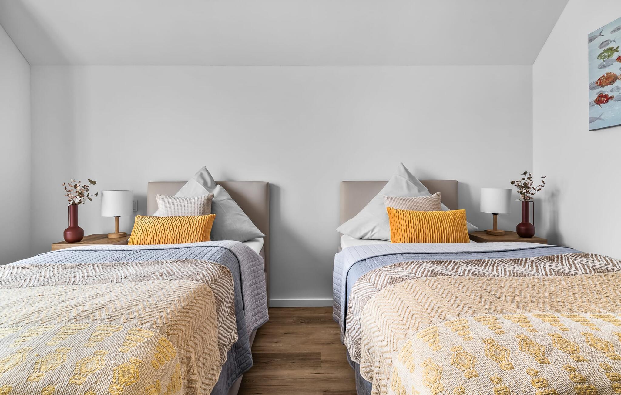 Det finns två sovrum för en god natts sömn. Det första sovrummet har en bekväm dubbelsäng med resårmadrass och egen TV. Det andra sovrummet har två enkelsängar med resårfjädrar. Alla rum kan mörkläggas helt tack vare plisségardiner och gardiner.