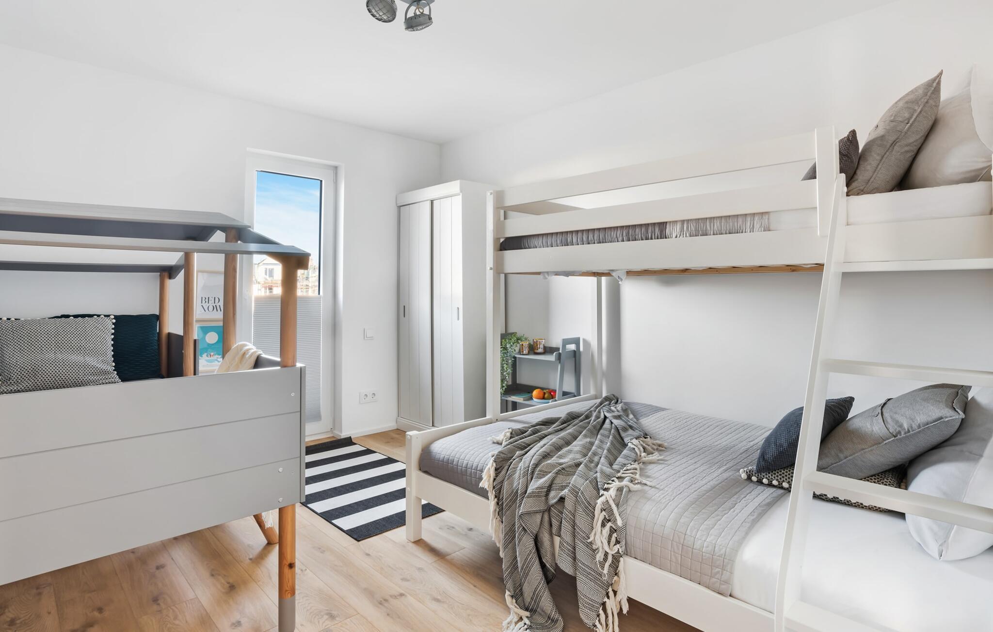 Det finns två sovrum med bekväma sängar för en god natts sömn. Det första sovrummet är utrustat med en dubbel resårsäng (180 x 200 cm), medan det andra sovrummet har en våningssäng för familjen (140 x 200 cm längst ner och 90 x 200 cm högst upp) och en cool beach house-säng för de små (90 x 200) för att säkerställa en god natts sömn. Dessutom har båda sovrummen mörkläggningsalternativ som bidrar till ostörd sömn.