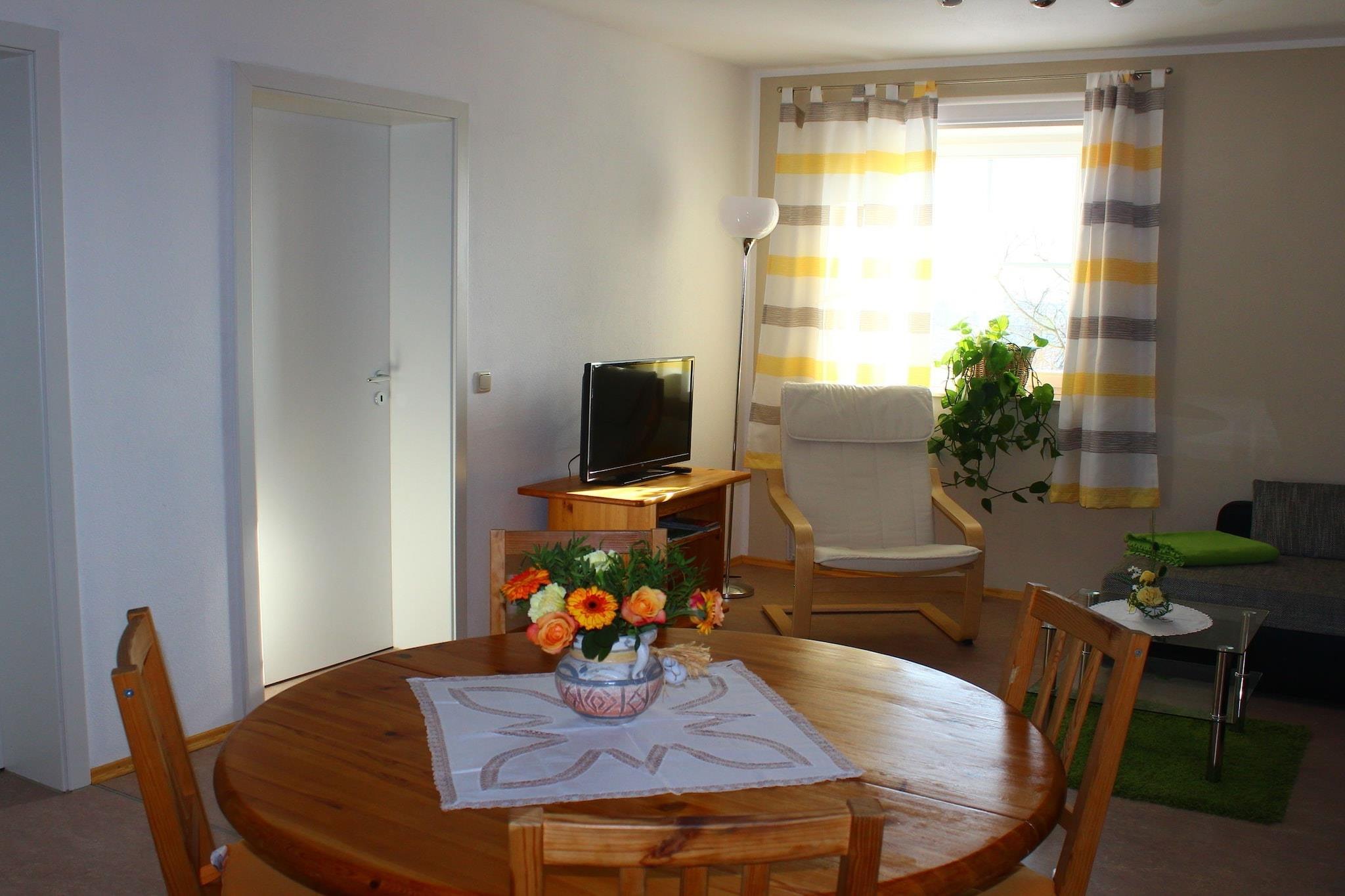 Denna inbjudande lägenhet på första våningen ligger i den fridfulla byn Weißig, nära Struppen, och erbjuder en bekväm vistelse för upp till 4 gäster. Den är idealisk för familjer eller små grupper och har två sovrum - ett med dubbelsäng, det andra med våningssäng - plus ett mysigt vardagsrum/matsal med satellit-TV och radio. Det öppna köket är fullt utrustat med en keramisk spis, ugn, mikrovågsugn, diskmaskin, kyl-frys och filterkaffebryggare, vilket gör hemlagad mat till en lek. Det moderna badrummet har dusch, handfat och toalett, medan extrafunktioner som spjälsäng, barnstol och centralvärme garanterar komfort året runt. Gå ut för att njuta av den gemensamma trädgården med kolgrill, möbler och privat parkering. En laddstation för elbilar ger miljövänlig bekvämlighet. Med en skog bara 500 m bort, floden Elbe (2 km) och en allmän lekplats (250 m) i närheten, är denna plats perfekt för naturälskare och familjer. Restauranger (100 m), cykeluthyrning och kollektivtrafik (500 m) gör det enkelt att utforska Sachsiska Schweiz och Dresden.