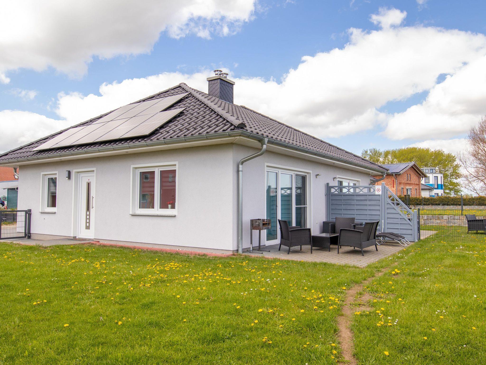 Die Terrasse ist mit Gartenmöbeln, Grill und zwei Gartenliegen ausgestattet. Das Grundstück ist umzäunt und somit auch für Kinder und Hunde bestens geeignet.