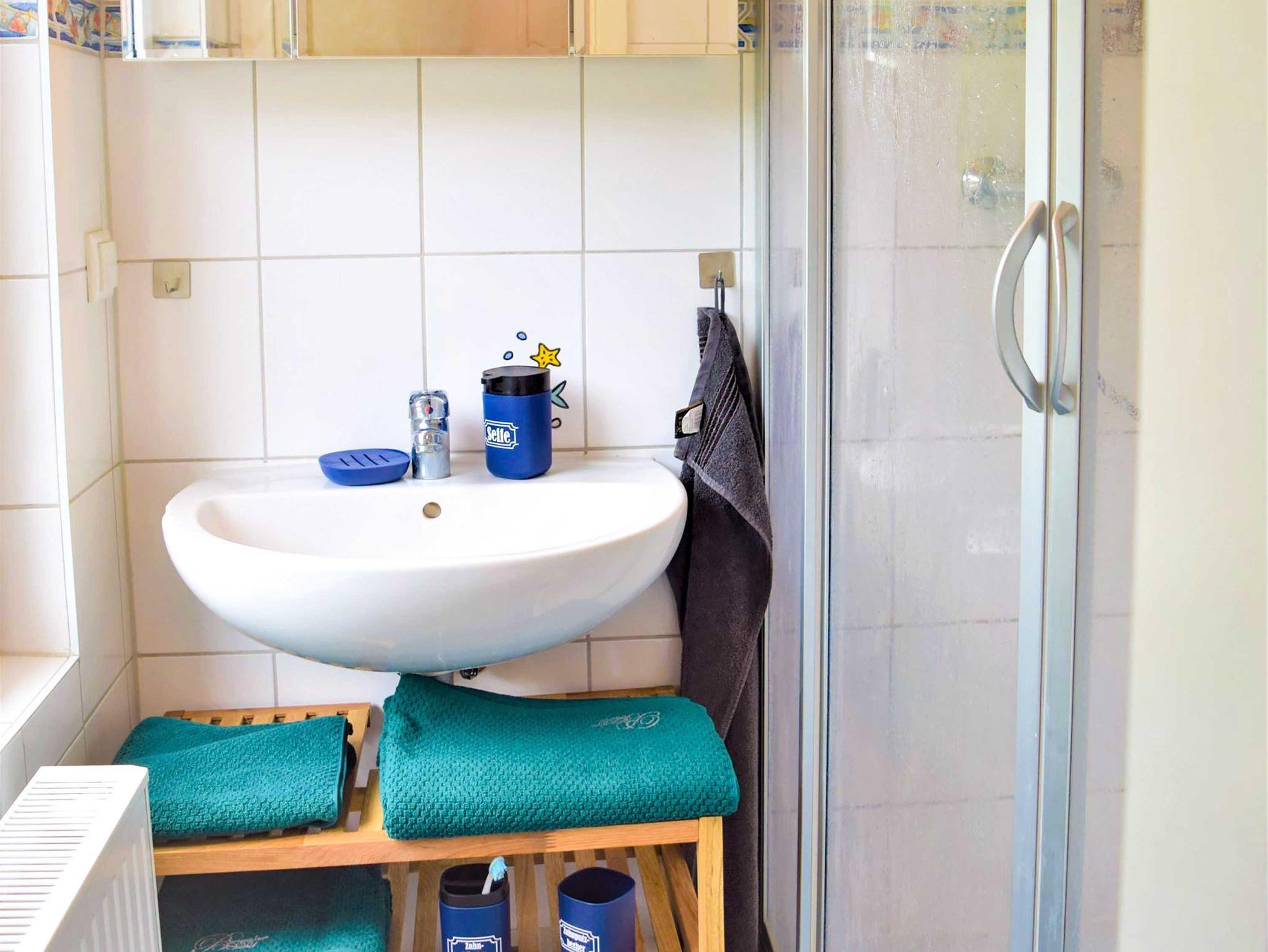 Das offene Wohnzimmer mit Fernseher sowie Radio und die voll ausgestattete Küche mit Kaffeemaschine, Toaster, Wasserkocher, Geschirrspüler, Herd, Backofen und einem Kühlschrank mit Gefrierfach laden zum ausgedehnten Frühstück oder Spieleabend ein. Es stehen Ihnen zwei helle Schlafzimmer mit einem Einzelbett (90x190) und einem Doppelbett (140x200) zur Verfügung. Die Zimmer sind ohne Türen miteinander verbunden. Es gibt lediglich eine verschließbare Tür zum Bad, ausgestattet mit Dusche und WC.
