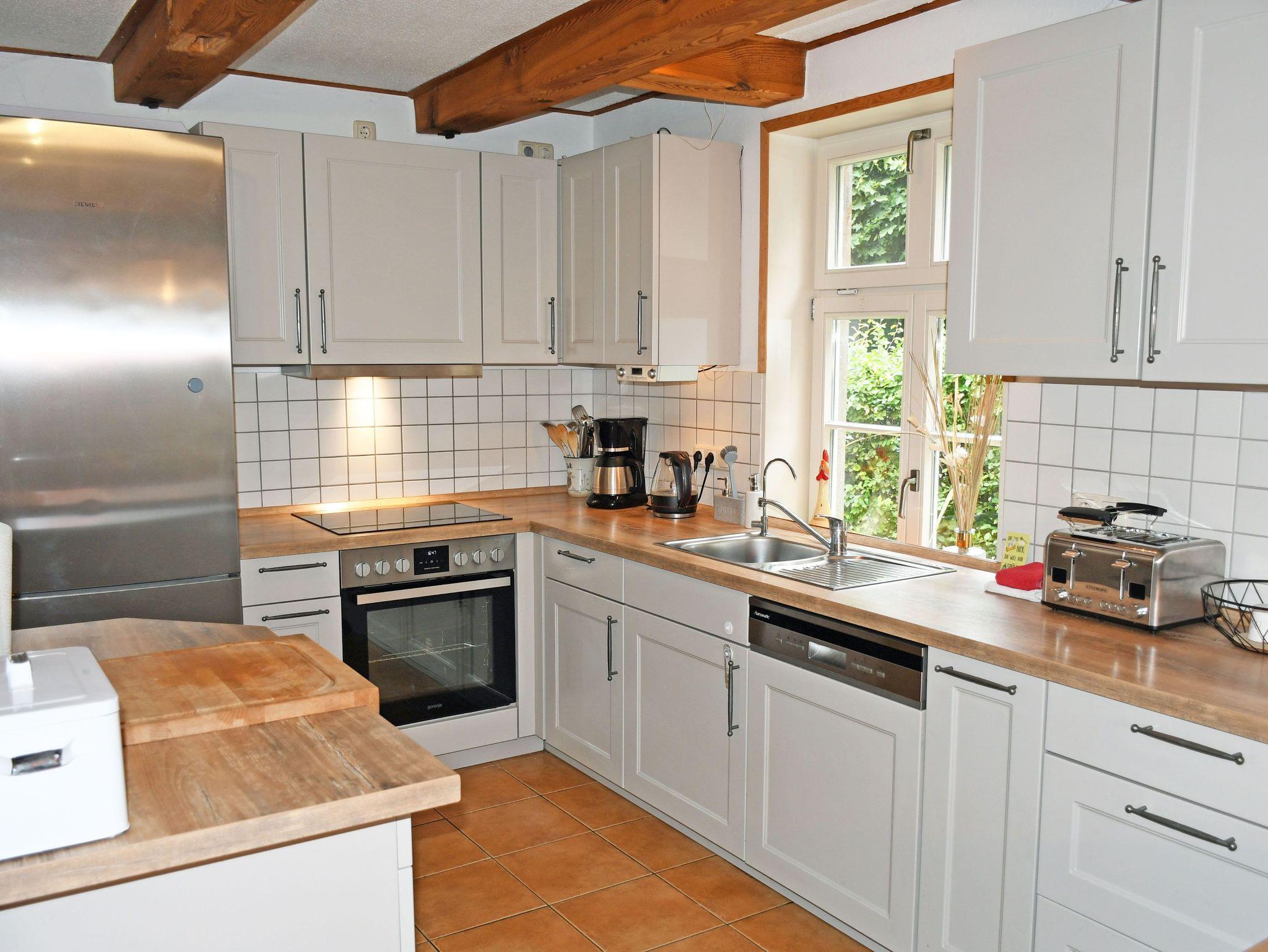 Im unteren Bereich finden sie den Eingangsbereich mit der Treppe, eine große Wohnküche mit dem Familienzimmer und das große Duschbad. Alles ist ebenerdig und mit einer Fußbodenheizung ausgestattet. Einen Kamin können sie in den Wintermonaten natürlich auch nutzen. Das Dachgeschoß verfügt über 3 Schlafräume. Zwei sind mit Doppelbetten (1,80 m und 1,60m breit) ausgestattet und eins mit einem Bett (90 x 200 cm), welches auch zu einem Doppelbett ausgezogen werden kann. Ein Kinderbett und ein Hochstuhl stehen kostenfrei zur Verfügung. Im Obergeschoß gibt es außerdem ein Bad mit Wanne.