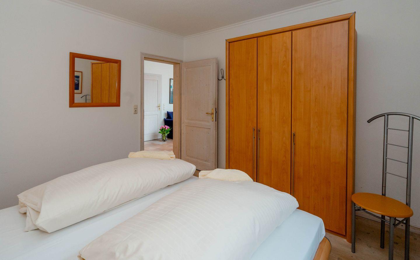 Die ebenerdige Westerländer 2-Zimmer-Ferienwohnung „Bootsmann“ besticht mit viel Licht durch ihren attraktiven Wintergarten und durch ihre Lage in einer ruhigen Seitenstraße. Von hier aus sind es nur fünf Minuten zum Strandübergang „Friesische“, wie ihn die Einheimischen verknappt nennen. Dieses Ferienappartement ist ungefähr 40 Quadratmeter groß und perfekt für zwei Personen, hat sogar eine Terrasse, sehr schönen Plavoizen-Boden und ein Schlafzimmer mit Doppelbett.