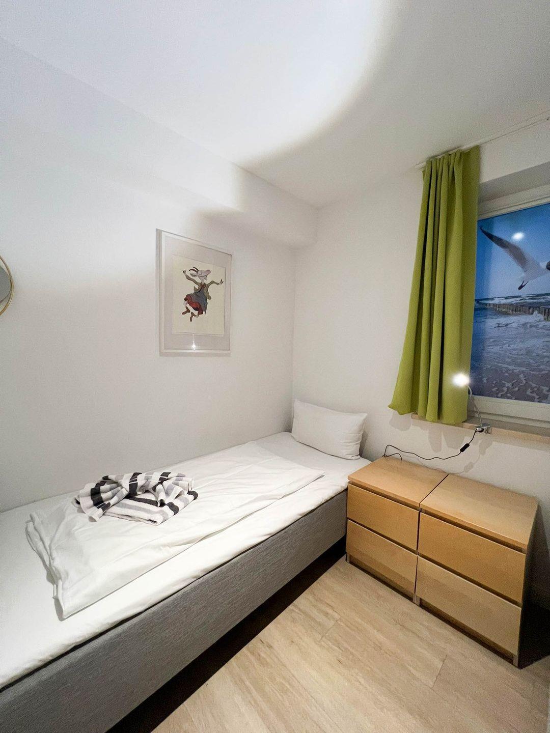Herzlich willkommen im "Blaue Huis".Dies großzügige 4-Zimmer-Appartement fühlt sich fast wie ein Einzelhaus an. Das helle Wohn- und Esszimmer mit Kamin, ein Doppelschlafzimmer, vollausgestattete Extra-Küche und Duschbad befinden sich im Erdgeschoss. Die Süd-Terrasse mit Strandkorb bietet den perfekten Platz zum Entspannen. Im ruhigen Untergeschoss erwarten Sie zwei weitere Schlafzimmer, ein zweites Bad und die Luxus-Sauna. Die Lage zwischen Westerland und Wenningstedt ist ideal, nah zur Nordseeklinik und zum Strand. Ein Bäcker und Supermarkt sind um die Ecke.