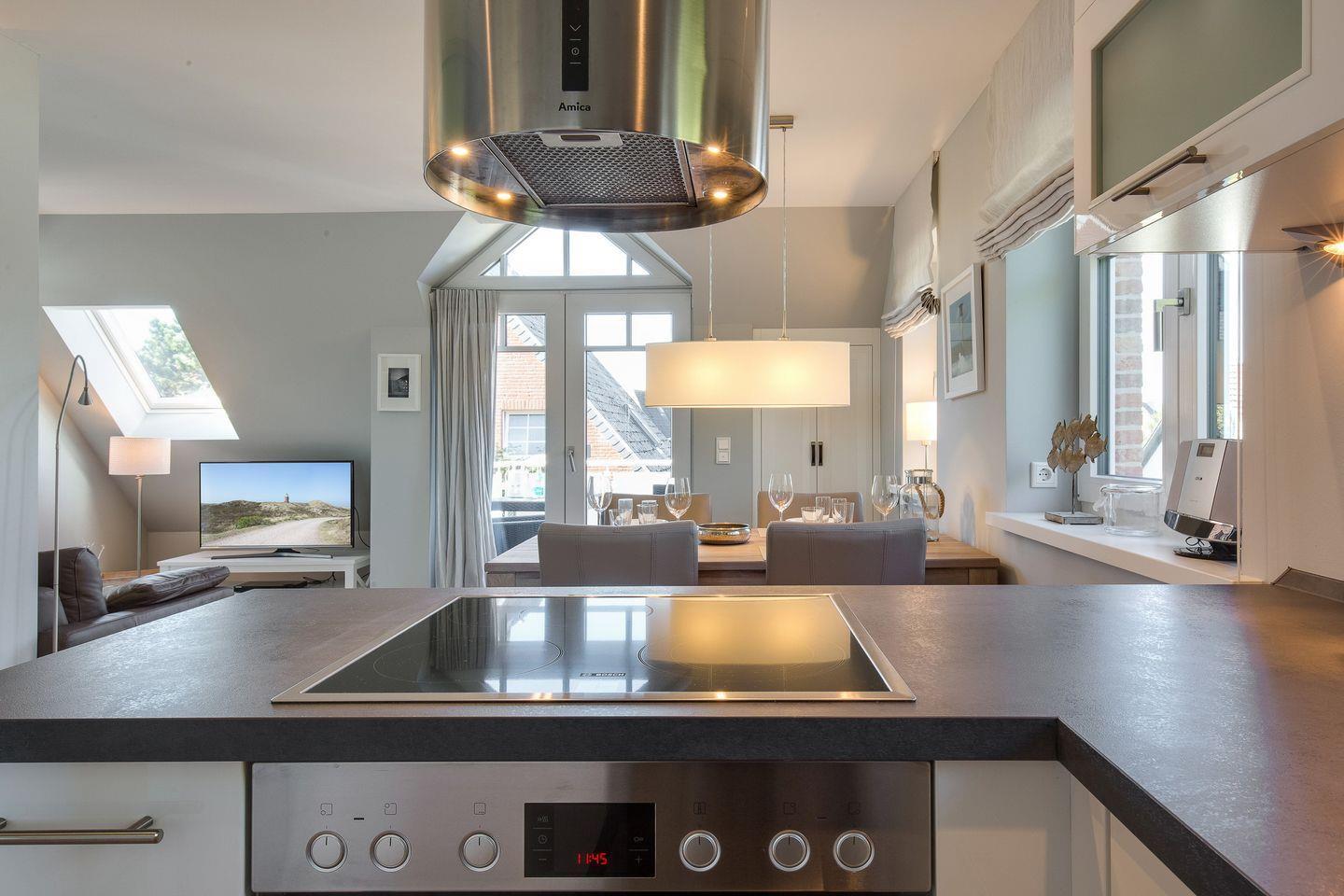 In Ihrer Luxusküche mit Design-Esse lässt es sich herrlich kochen, an Ihrem schönen Holztisch ein Gläschen Vino bestens zelebrieren. Der Südbalkon lässt Sie die Sylter Sonne mit wertigem Gartenmobiliar genießen.[nbsp][nbsp]