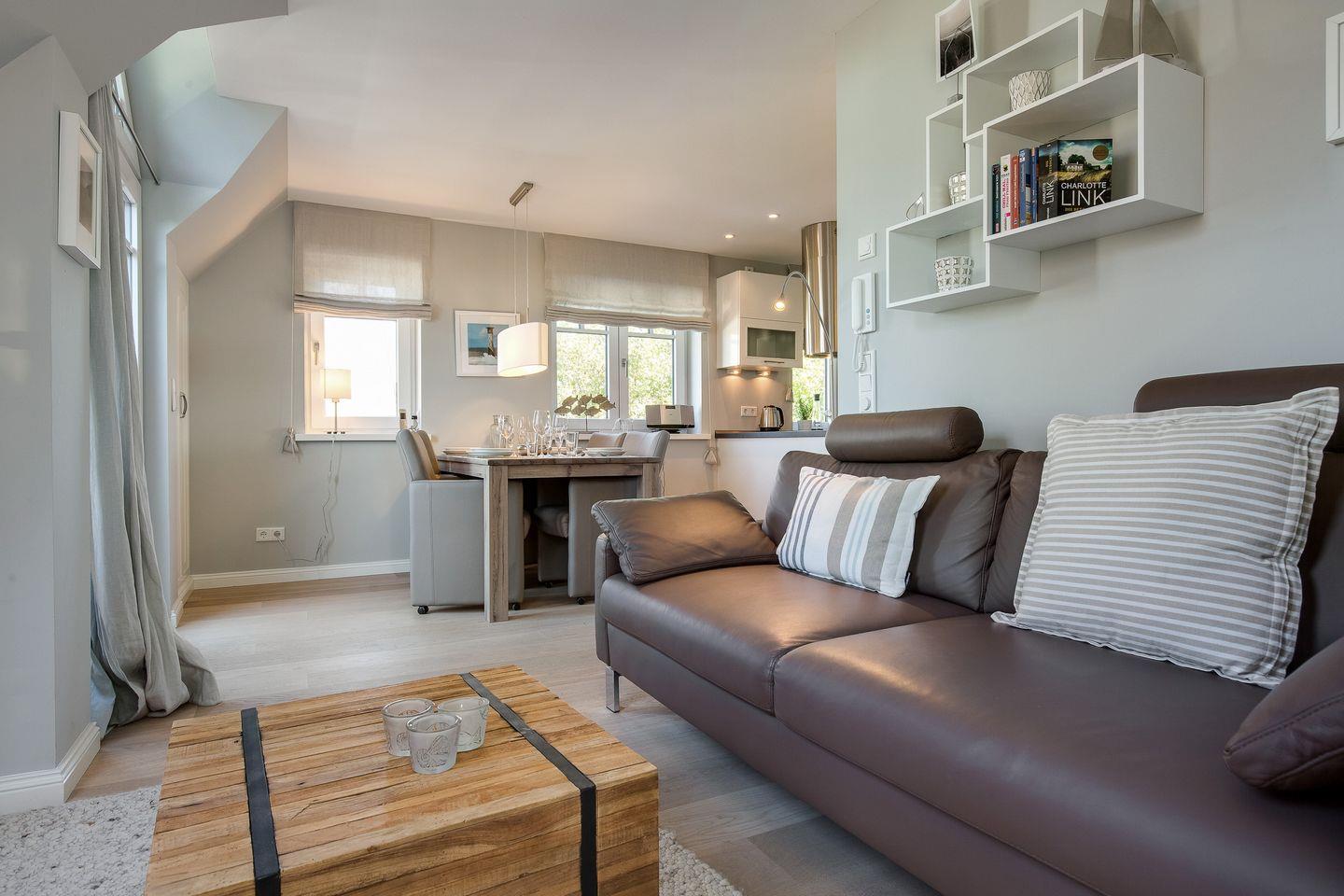 Hochwertiges und sehr geschmackvoll gestaltetes drei Raum Appartement im Ober- und Dachgeschoss. Ca. 75 qm Nutzfläche erwarten bis zu 4 designbegeisterte Personen in zurückgezogener Lage zwischen Westerland und Wenningstedt.
