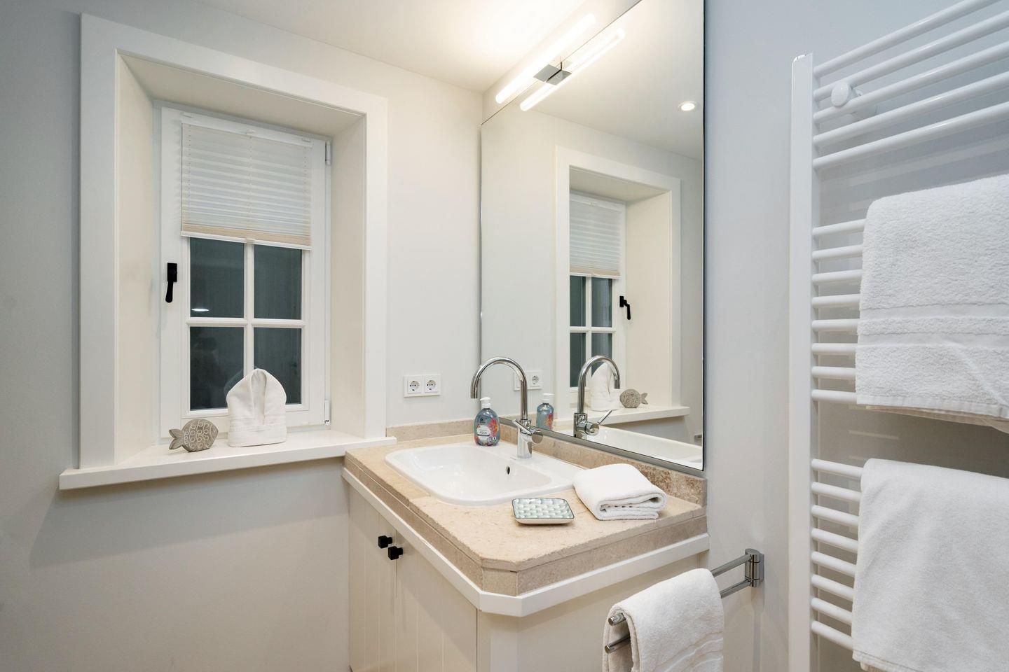 Ein Traum unter Reet. Diese friesische Doppelhaushälfte für bis zu 7 Personen im Herzen Keitums bietet auf 180 m² einen Mix aus Modernität und absoluten Luxus. Der lichtdurchflutete Wohnbereich mit offener Küche bietet viel Platz zum gemeinsamen Kochen, Essen und Verweilen. Auf der angrenzenden Terrasse samt Gartenmöbeln und Strandkorb (in der Saison) lassen sich viele Sonnenstunden verbringen. An kalten Tagen sorgt der Kachelofen im Wohnbereich für warme Temperaturen. Im Eingangsbereich befindet sich ein Gäste-WC. Über eine Treppe gelangen Sie ins Obergeschoss, dort erwarten Sie zwei Schlafzimmer sowie zwei großzügige Bäder. Im Dachgeschoss befindet sich ein Schlafzimmer mit Einzelbetten. Ein weiteres großzügiges Schlafzimmer sowie Badezimmer erwartet Sie im Souterrain. Dort dient Ihnen auch - besonders in den Wintermonaten - eine finnische Sauna mit Ruheraum als Wellnessoase. Alle Schlafräume sind durch hochwertige Tischlereinbauten ausgestattet und bieten somit viel Stauraum für einen Sylturlaub. WLAN, einen zugehörigem PKW-Stellplatz am Haus inkl. E-Ladestation sowie ein Waschtrockner stehen Ihnen zur Verfügung. Haustiere sind willkommen.